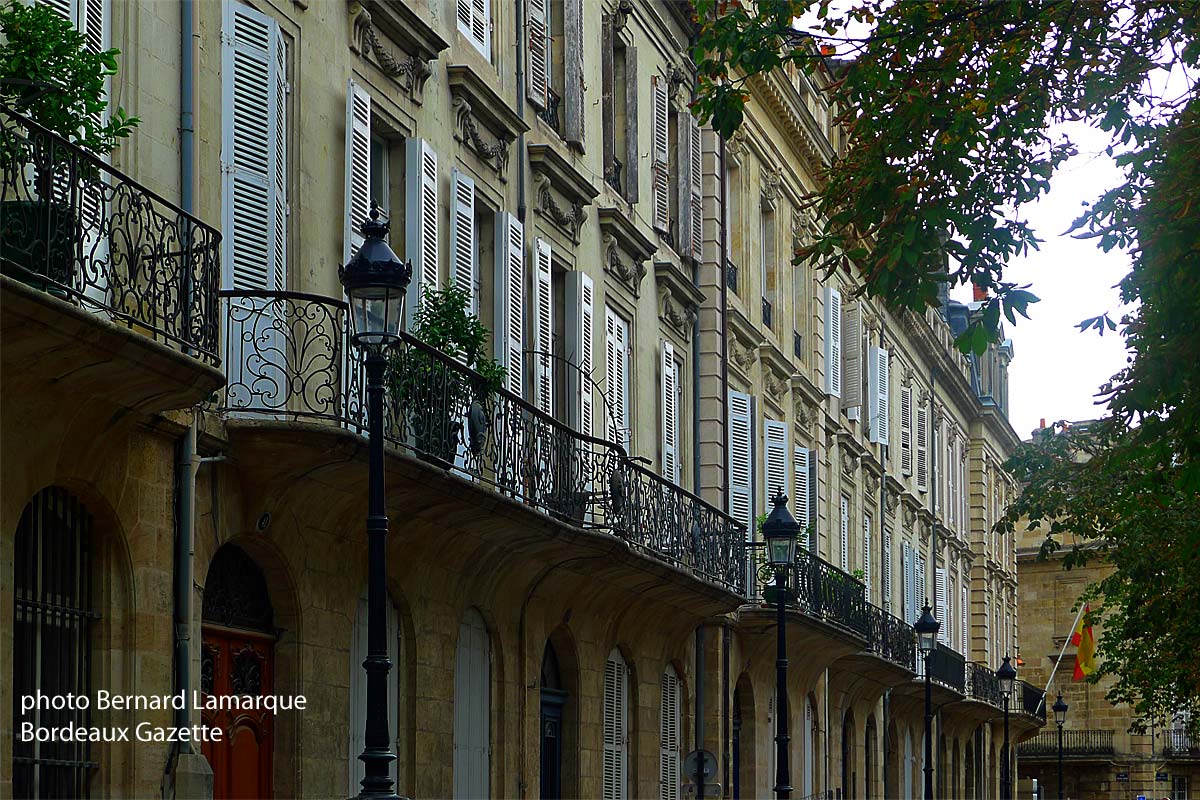 Dans ce faubourg, l’intendant Tourny au XVIIIème siècle va transformer un chemin fangeux au Nord du château Trompette dit chemin de la Fausse Braye en le faisant paver et planter d’arbres devenant le cours pavé des Chartrons. Entre 1770 et 1780, après le départ de Tourny, le Maréchal de Richelieu, gouverneur militaire de Guyenne et Maximilien Meriadeck de Rohan vont donner une impulsion forte à la construction privée, avec d’une part la construction du Grand Théâtre édifié sur une partie du glacis du château Trompette à l’instigation du Maréchal de Richelieu et Maximilien Meriadeck de Rohan, lui n’aura pas le temps de s’installer dans le palais portant son nom, qu’il a fait construire, nommé comme prince-évêque de Cambrai. Les lotissements comme celui initié par Maximilien Meriadeck de Rohan à l’Ouest, vont changer l’aspect du cours pavé avec les lotissements des terrains Dumas puis sur les terrains Mitchell pilotés par les frères Laclotte donnant naissance a un parc immobilier à destination des riches négociants, caractéristique avec les balcons sur trompe et leur ferronnerie que l’on peut voir encore aujourd’hui. Durant le XVIIème siècle Bordeaux va être un chantier perpétuel et la spéculation foncière et immobilière va être de la folie. Tout cela ressemble un peu à ce qui se vit aujourd’hui mais pas forcément avec la même réussite esthétique, ce dont beaucoup se plaignent. Ce n’est qu’au XIXème siècle après la destruction totale du château Trompette que le cours sera prolongé jusqu’au bord du fleuve en rejoignant les quais qui ne sont pas encore spécialement pavés ni guère construit au delà de l’actuel cours du Médoc.