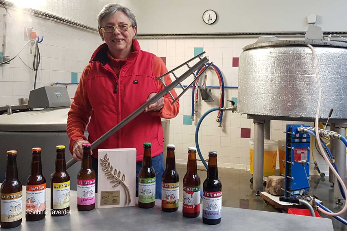 En 2015, Lydia est la première femme brasseuse de Gironde suite à la création de son entreprise qu’elle décrit comme un « lieu de vie, d’échanges et de partages ». C’est en effet après mille vies que sa passion pour la bière la rattrape à l’âge de 57 ans. « J’ai d’abord été menuisier-ébéniste spécialisée dans le tournage sur bois et après un accident du travail, j’ai passé un diplôme d’animation et d’éducatrice spécialisée. Puis, j’ai été responsable du Secteur Jeunes au Centre Social de Bordeaux Nord et me suis occupée de personnes en précarité énergétique. » détaille-t-elle. Mais en parallèle cela fait déjà une dizaine d’années que cette passionnée brasse en amateur dans les cuisines du restaurant de son théâtre de quartier « La Boîte à Jouer » et huit ans qu’elle y élabore ses recettes. Longtemps mue par l’idée d’ouvrir un bar à bières, Lydia décide finalement de vivre de sa passion mais la route qui mènera à l’ouverture de « la P’tite Martial » n’est pas sans embûches. Pour l’heure, les cuves réclament son attention.