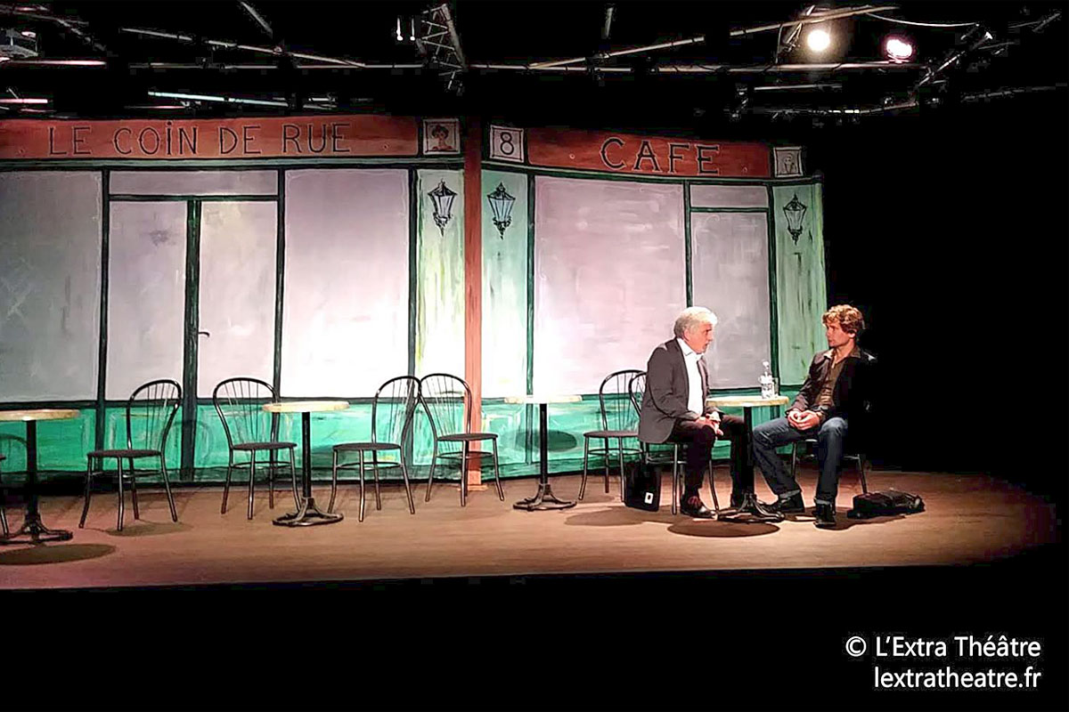 A la terrasse d’un café parisien, Daniel vieux critique musical est assis. Il attend Thierry, jeune étudiant, fringuant Rastignac fraîchement arrivé de sa province qui lui a été chaudement recommandé par un certain Pavel. A travers une situation somme toute banale, Pierre Barillet décrit avec précision, par petites touches pointillistes, l’évolution de leurs rapports. Ce pourrait être pourtant le simple récit d’une rencontre, mais l’auteur, avec un talent consommé, s’en saisit pour raconter en creux l’histoire de Daniel et de Pavel, pour régler son compte aussi au petit monde de la critique et de l’élite. Enfin, c’est une réflexion terrible sur le bilan d’une vie paradoxalement vide, où il ne reste que le pathétique espoir de s’accrocher, comme pour ne pas mourir, à une nouvelle attache, à ce jeune homme dont il aimerait se faire un ami, peut-être même un amant, même si l’évocation d’amours anciennes et d’une épouse (toujours invisible) peut laisser planer un doute …. Daniel est lucide, existentialiste, misanthrope et amer. Philippe Crespeau ( Daniel ) donne à son personnage une intensité et une intériorité rares. Il campe à merveille ce personnage à la quête désespérée d’un autre pour rompre avec sa solitude.