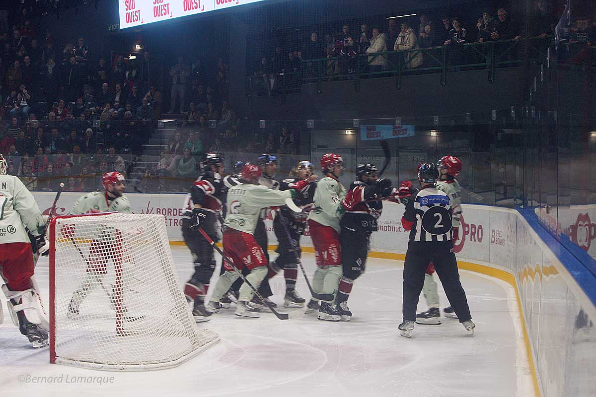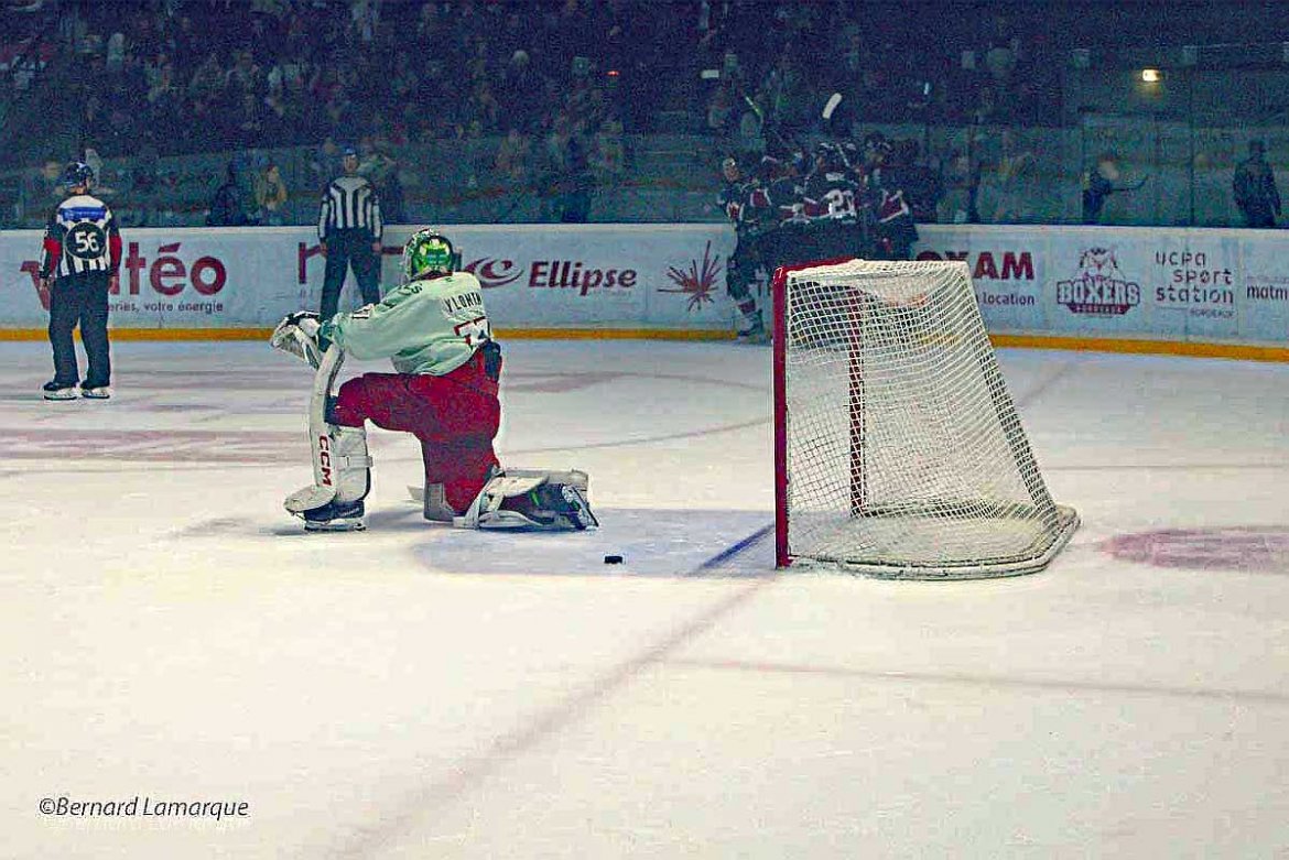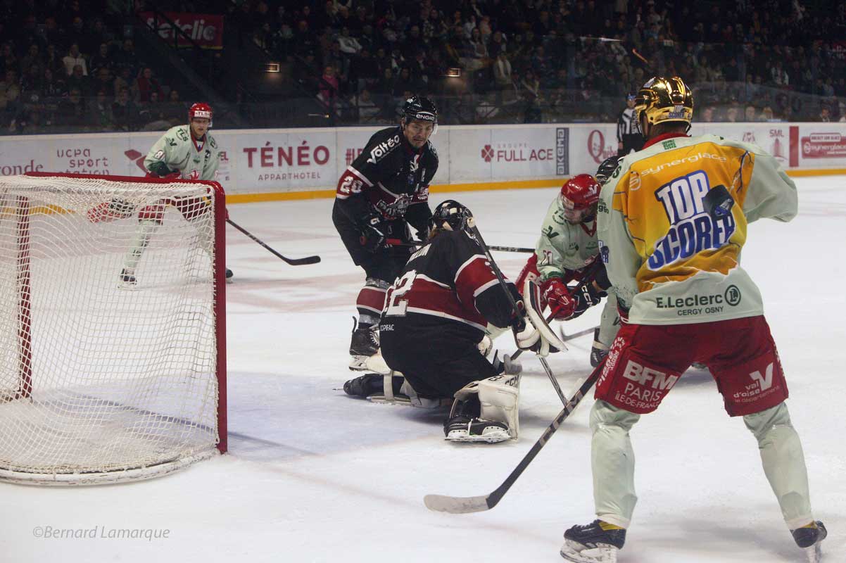 L’entame a été pour le moins engageante avec quatre buts dans les dix premières minutes de la rencontre dont deux de chaque côté mais si l’intensité s’est maintenue le compteur ne s’est pas affolé mais la première période s’est terminée sur l’avantage de trois à deux pour les visiteurs. Le second temps moins prolifique a vu encore les visiteurs clôturer la deuxième période sur l’avantage de quatre à trois car si les Boxers étaient revenus à la marque les Cergypontains avaient immédiatement repris la main. Tout s’est joué dans le troisième tiers temps ou tout d’abord les Boxers sont revenus bord à bord, ensuite ils ont mis un cran supplémentaire à leur prestation pour d’abord revenir à égalité puis ils ont entrepris d’empocher la partie mais ils ont eu bien du mal à terrasser leurs adversaires qui voulaient ce match autant qu’eux et il a fallu attendre l’ultime minute pour voir Jevpalovs tuer le match à vingt huit secondes de la fin du match. Les visiteurs ont bien tenté la cage vide mais le temps était trop court pour revenir à moins d’un miracle.