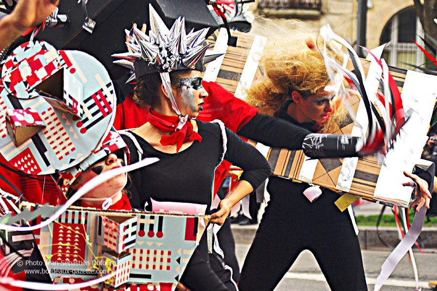Ainsi s’achève la trilogie carnavalesque de Charlie Le Mindu, après le carnaval "Monstre" en 2015, le carnaval "Gonflé" en 2016, c’était au tour du carnaval "Flash" fait de métal et de paillettes argentés. La parade festive et colorée s’est élancée, en début d’après midi, allée serr, pour un final Place Pey Berland. Découvrez les photos du Carnaval des 2 rives de Bordeaux édition 2017/