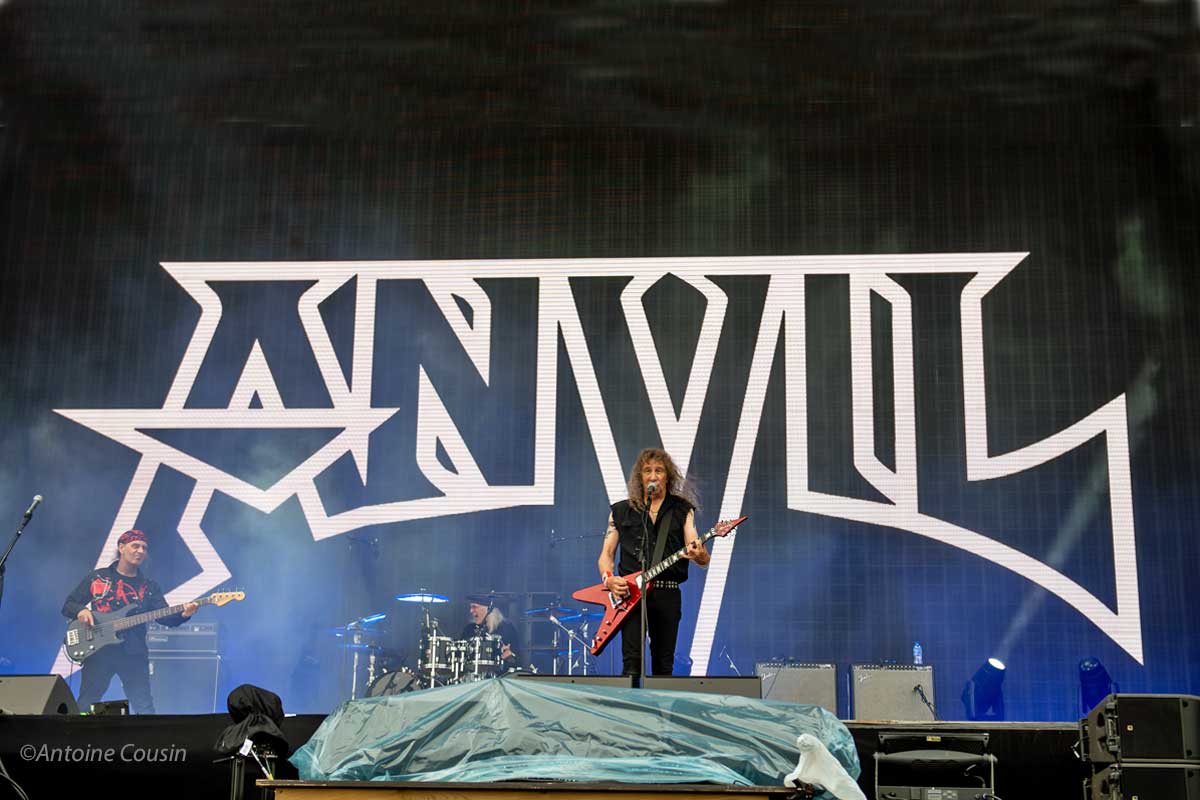 Dans la matinée, le groupe canadien Anvil de 1978, connu de tous métalleux grâce à leur film… « Anvil ! The story of Anvil » a joué son set en fond de scène, sans fioritures. La météo et l’avancée de scène pour le soir n’aident pas, le concert semble être passé inaperçu.
