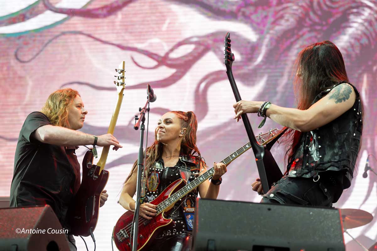 Ce sont les polonais Crystal Viper qui testent le public en premier avec leur heavy metal de très haut niveau magnifié par sa charismatique chanteuse/bassiste Marta Gabriel. Hélas, les créneaux du matin ne durent que 30 minutes. On en redemandait.