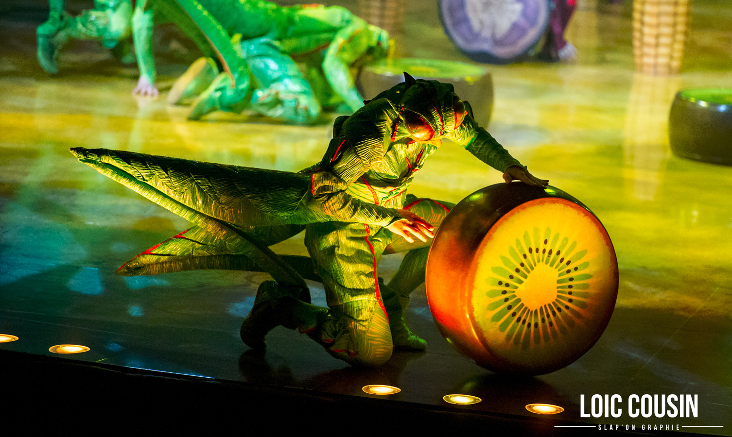 Le show « OvO » démarre tambours battants avec des fourmis jongleuses, jouant avec des kiwis à bout de jambe et de pied. Un modèle de coordination, et de synchronisation quand on voit le rythme donné. Le second numéro est tout simplement sublime et gracieux, avec une libellule équilibriste à 3m du sol sur deux petits carrés en haut d’un perchoir. Quand l’insecte et sa branche ne font qu’un. Il n’y avait qu’à entendre l’ovation du public pour se rendre compte de la difficulté de l’exercice.