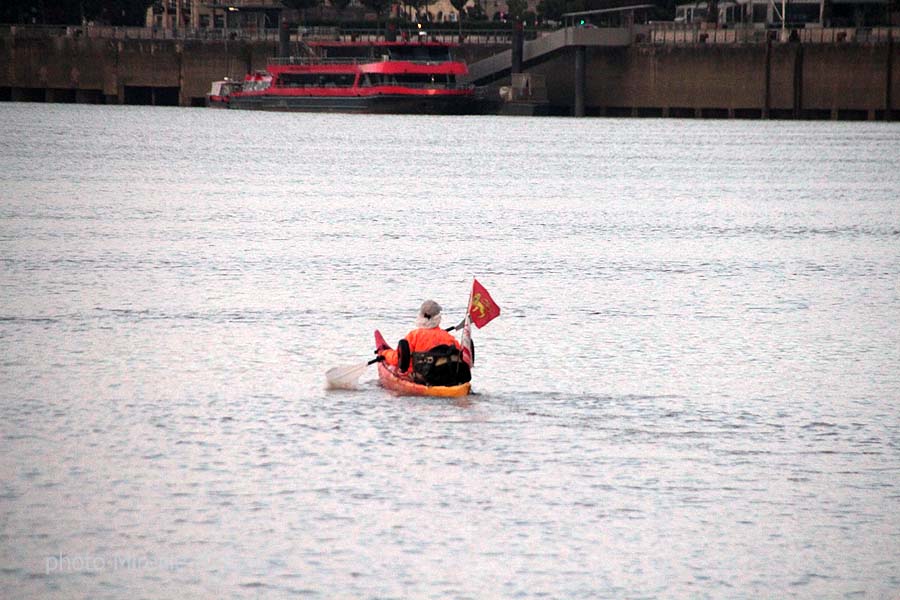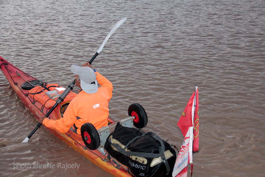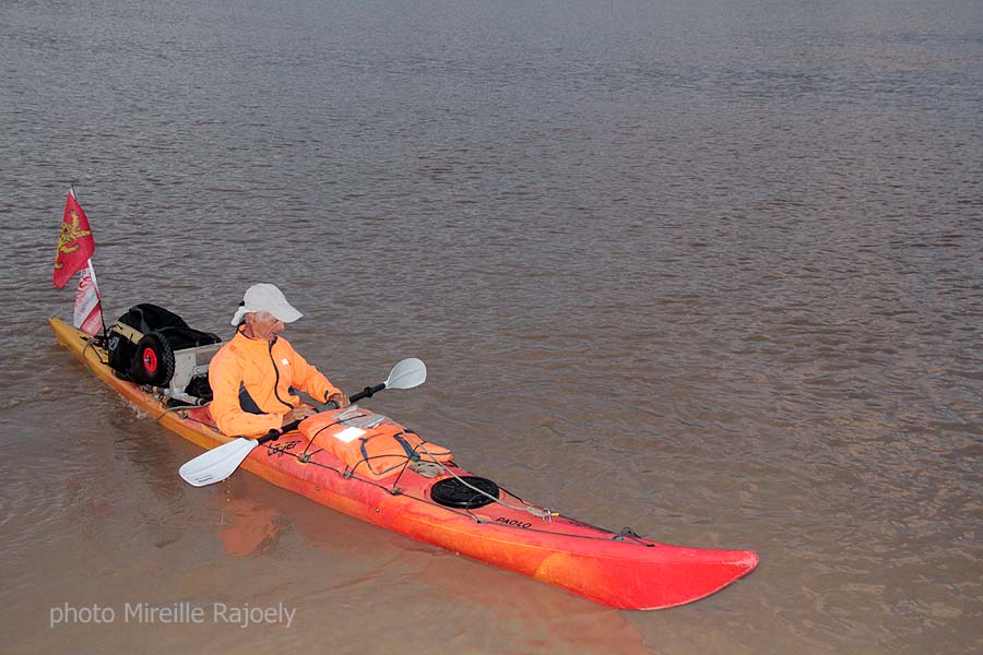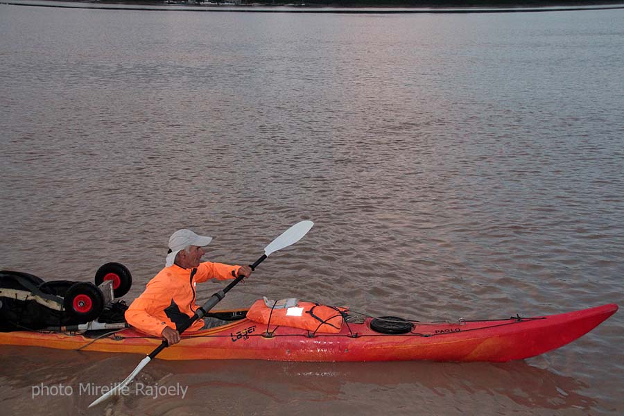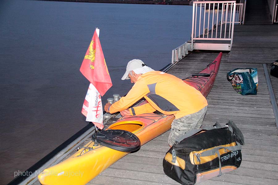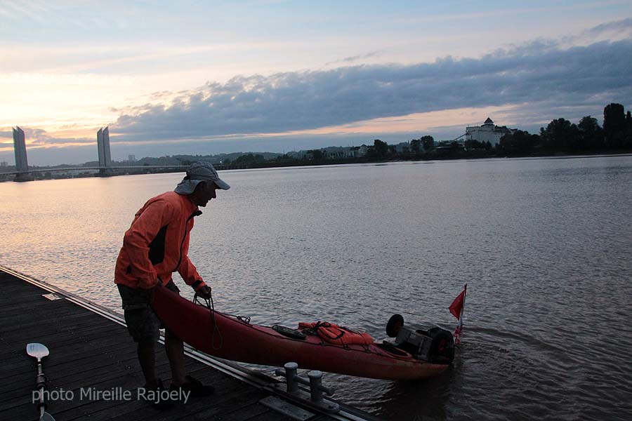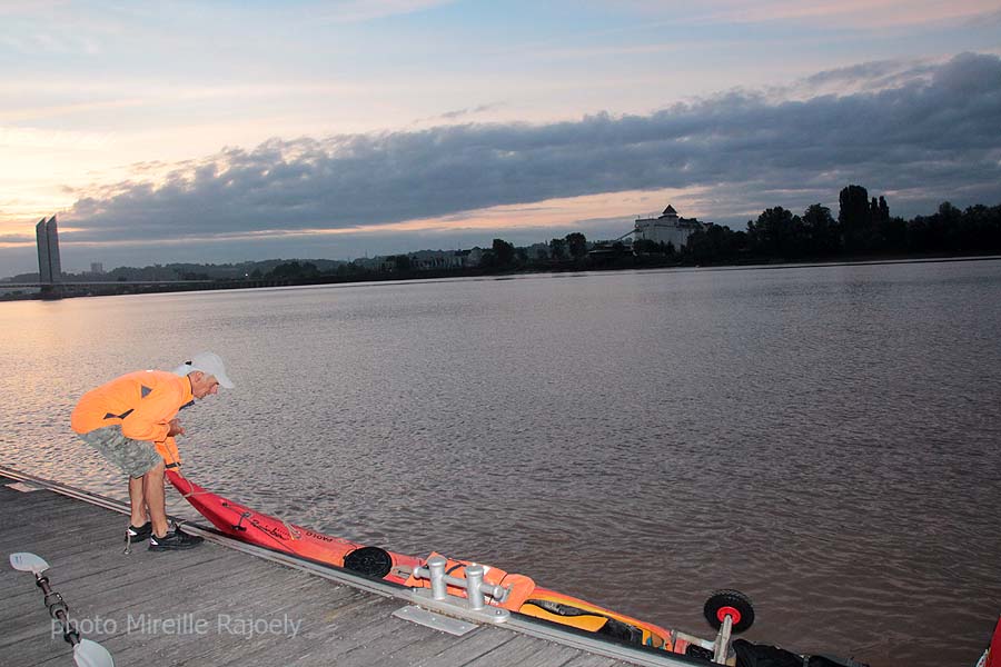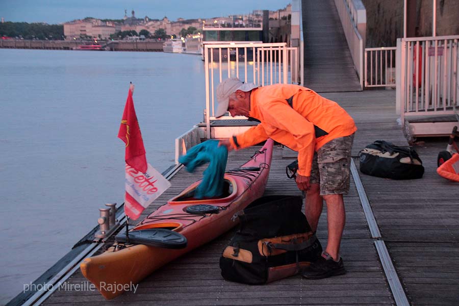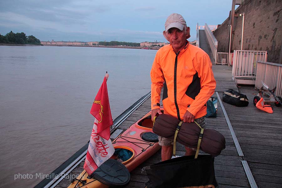 Comme chaque année, Gérard Lajournade met à l’eau dans le centre de Bordeaux son kayak tôt le matin, pour rejoindre les Saintes Maries de la Mer. Cette année il a changé d’esquif mais c’est toujours un Laser mais rouge et jaune et non plus bleu qui bat pavillon Bordeaux-Gazette et qu’il a baptisé "Paolo".