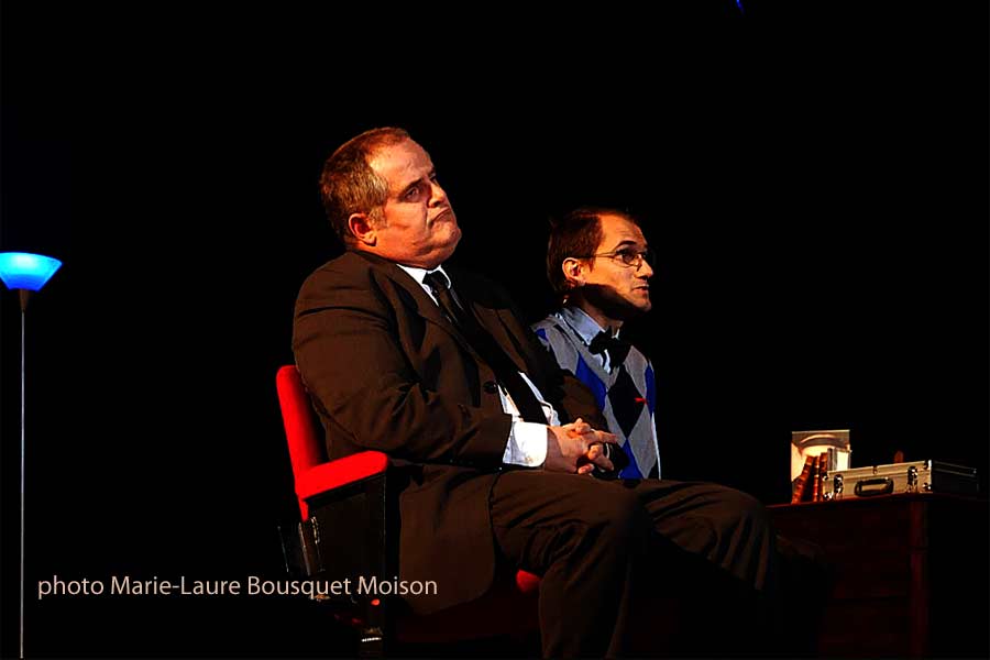 Le mot de l’auteur et metteur en scène – Éric Leger « Pour l’écriture de la pièce, je suis parti de Knock de Jules Romains. » Le fait est que c’est un Knock puissance dix, pur produit d’un super capitalisme et au fil du déroulement de la pièce, on se demande si son Ox est complètement cynique ou parfaitement fou. Mercredi soir, c’était une première « mondiale » comme l’a souligné avec humour Jean-Pierre Terracol le directeur de la Lucarne. Pour ce baptême, au plein cœur de l’hiver, les acteurs ont eu un peu de mal à rentrer dans l’histoire et après un démarrage un peu lent, ils ont trouvé leurs marques. L’auteur acteur s’en sort bien, beaucoup de trouvailles pertinentes, un humour noir grinçant, un final déjanté. Venez braver la paresse de l’hiver qui voudrait nous transformer en marmottes frileuses pour vous glisser dans les fauteuils moelleux du théâtre de la Lucarne et passer une soirée particulière où chaque représentation est unique avec des gens vivants en 3 D avec un son naturel et parfaitement bio.