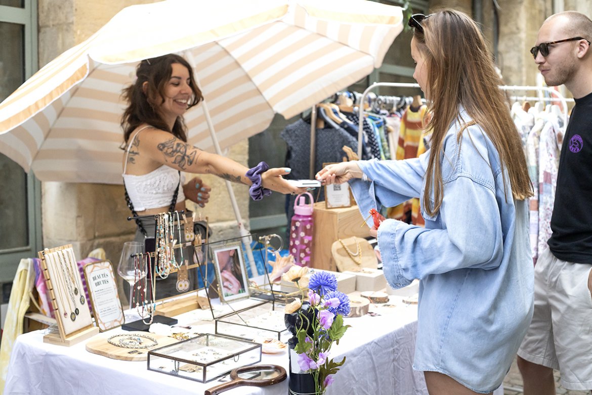 Dans les rues Bouquière, Buhan, de Guienne, Pierre de Coubertin, Saint-James, Sainte-Colombe, de la Sau et Teulère, mais aussi sur la place Fernand Lafargue et le parvis de la Grosse Cloche, les visiteurs ont pu flâner entre des dizaines de stands débordant de créativité. Bijoux faits main, céramiques, objets de décoration, vêtements éthiques, illustrations originales, cosmétiques naturels ou encore créations végétales : la diversité des propositions était à l’image de la richesse artisanale locale.