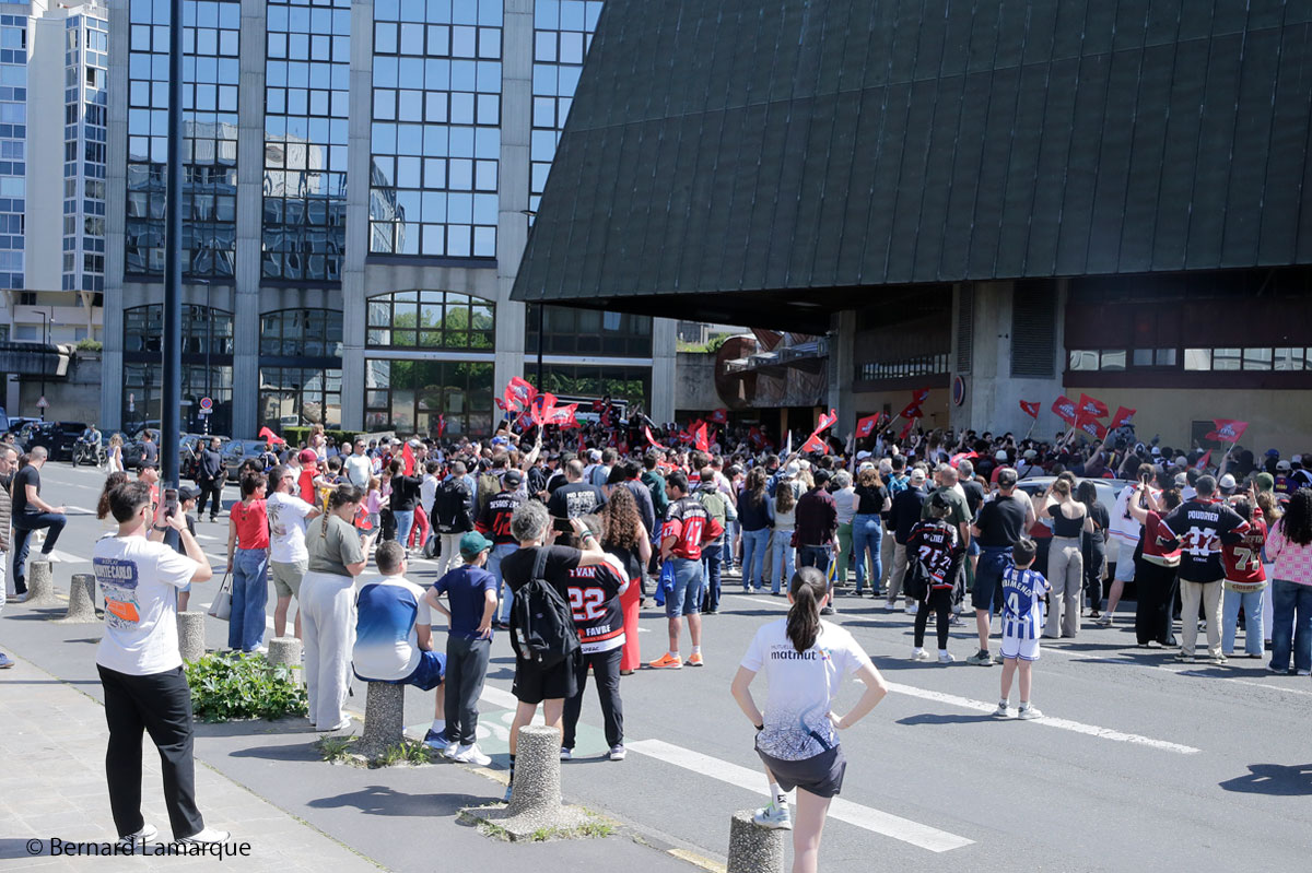 A la descente du bus la Coupe passe de mains en mains et chaque joueur tient à la brandir devant son public et ses supporters assemblés.