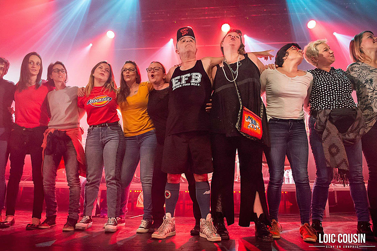 Mais outre le côté rock de cet album, c’est une nouvelle fois une déclaration d’amour faite aux femmes et à tout ce qu’elles représentent que le groupe a voulu mettre en avant. C’est dans ce sens que Manou a fait monter une femme sur scène pour lui déclarer sa flamme sur une chanson, puis une dizaine d’autres sur la suivante. En guise de cadeau, il fait preuve de grande générosité puisque que tout au long du concert, il offre des poils de son torse, son débardeur qu’il aura minutieusement frotté sous les aisselles, ou encore sa casquette transpirante.