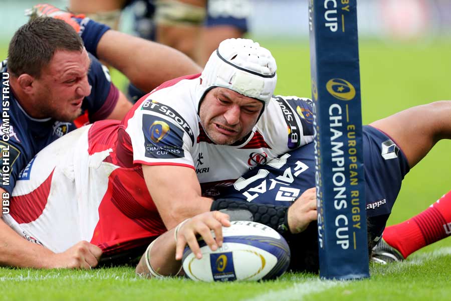 Le vrai tournant du match se situe sur le renvoi suite à cet essai où Talebula hérite du coup de pied de renvoi et qui réalise un exploit dont seul il est capable. Il relance et perce balle en main repousse un adversaire et après soixante mètres de course veut servir Serin qui est plaqué sans ballon, alors qu’il allait marquer sur le service de Talebula. Après arbitrage vidéo l’arbitre décide essai de pénalité et carton jaune pour le défenseur Sean Ready. Il reste deux minutes aux visiteurs pour revenir dans le bonus défensif et il vont tout tenter mais perdre le ballon dans les 22 mètres de l’UBB et Buttin ramasse, sert parfaitement Connor décalé qui après 80 mètres de course va entre les poteaux. La fin du match est sifflée suite à la transformation de Beauxis. Après le match Jacques Brunel se montrait satisfait et il y avait de quoi mais surtout il a mis en relief la performance du groupe qui a su se maintenir à un haut niveau de jeu sans marquer de baisse de régime durant le match. Sur la fin de la rencontre c’est le physique des unionistes qui a fait la différence avec une très belle prestation d’ensemble de toute la formation. S’il y a un joueur a cité en face c’est bien ce diable de Rory Best qui a montré une activité défensive de tous les instants.