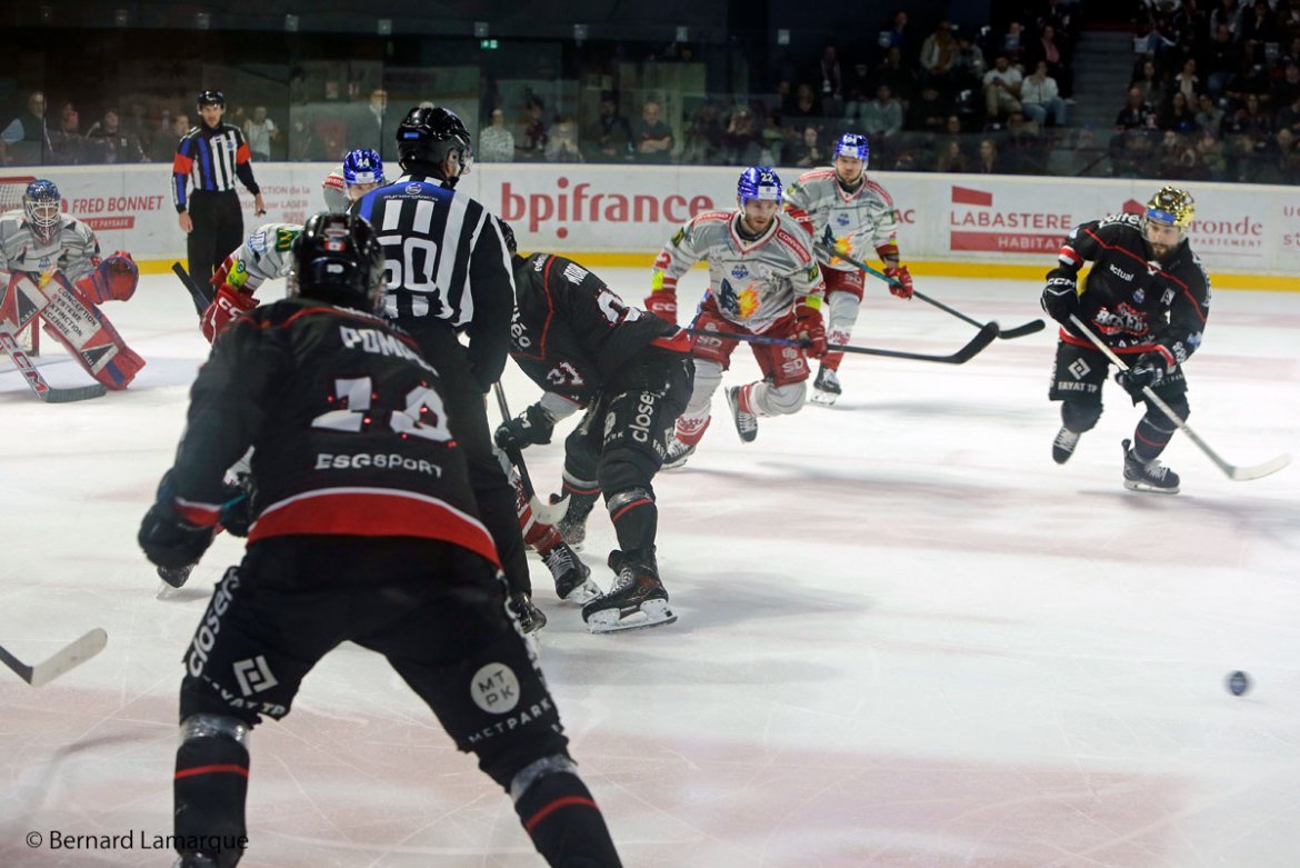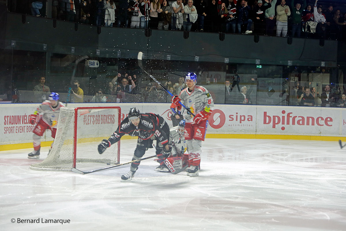 C’est parti très fort cette rencontre car en à peine trois minutes les Boxers ont inscrit un but, et en infériorité numérique, s’il vous plait, histoire de s’assurer un bon début et ils vont même faire mieux que çà en imposant un rythme d’enfer à leurs adversaires du soir qui ont bien tenter de se défendre sans y parvenir et commettant des fautes préjudiciables à leur rendement ceci étant relativement partagé par les Boxers tout en se montrant plus généreux sur la réalisation ce qui se conclut par un score de trois à zéro pour le premier tiers temps. Le second va commencer en plus rapidement encore avec ce diable de Tommy Giroud qui ne va pas laisser une minute s’écouler avant d’envoyer le palet au fond de la cage mais ce sera la seule réalisation de ce deuxième tiers temps ou les visiteurs accumulent les fautes et les pénalités jusqu’à une de cinq minutes montrant que les visiteurs perdent un peu leur sang froid.