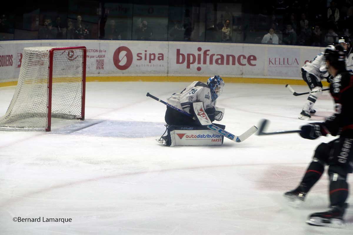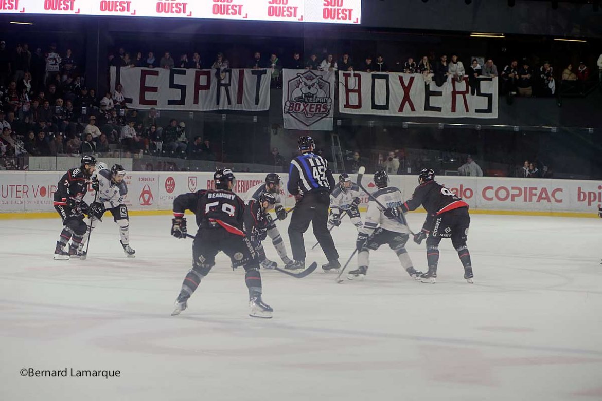 Les efforts fournis par les Marseillais lors du match précédent ont fini par peser fort sur les organismes car ce samedi soir les Boxers ont montré la même forme et la même application dans le jeu. Les Marseillais ont bien répondus durant les deux premier tiers temps la encore leur gardien a bien protégé sa cage mais la fatigue aidant la patience des Boxers a permis de régler le problème dans le troisième tiers temps, le gardien Marseillais gardant sa cage inviolée pendant cinquante et une minutes. C’est une tradition Marseillaise que de posséder d’excellent gardien. Ce coup ci menant deux à zéro, ils ne se sont pas fait reprendre, ils ont méthodiquement enfoncé le clou face à un team marseillais qui n’a pas été avare de fautes plus ou moins graves. Maintenant match 3 et 4 à Marseille mardi et mercredi avant de revenir à Mériadeck si nécessaire.