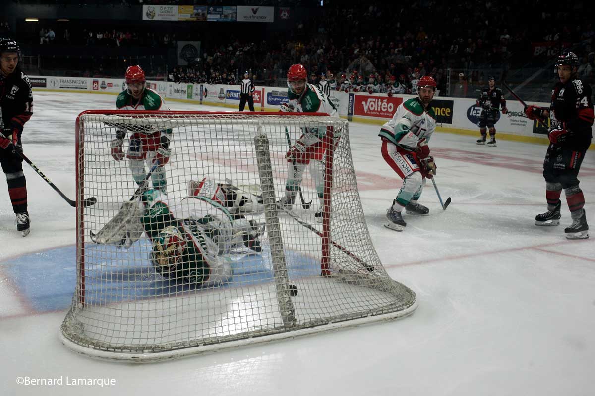 Ce sont près de 3 000 spectateurs qui ont décidément assisté à cette rencontre et qui ont vu que l’Hormadi a un mal fou à rentrer dans ce championnat de Ligue Magnus dont il occupe la dernière place avec aucune victoire depuis le début de la saison. On n’a pas senti l’ambiance d’un derby durant la première mi-temps où tout le monde a cherché à patiner vite et à ce petit jeu il y a eu peu de pénalités sifflées soit une de chaque côté, pour cette première période les Boxers n’ont marqué qu’un seul but et le nombre de buts marqués pour chaque période a correspondu au numéro de la période donc pour les Boxers le rythme a été un but en première période, deux buts en deuxième période et trois buts en troisième période mais on ne peut pas dire que cela ait été voulu comme ça. Malgré tout il ne faut pas accabler Loubier qui ,a du faire face à 40 tirs. Les Boxers voulaient se rattraper de leur échec à Cergy-Pontoise et reprendre des points au classement pour se maintenir le plus possible dans le haut du tableau et ils n’ont pas trop souffert pour y arriver.