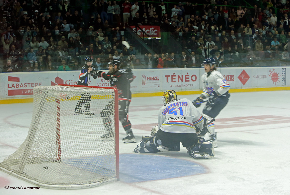 - Le 3 à 2 pour les Boxers qui signe la prise en mains du match. Charpentier le deuxième gardien de Nice est battu