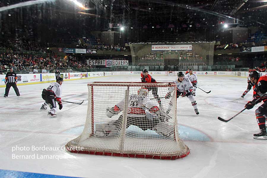 La place des Boxers un instant contestée dans le trio de tête, ne l’est plus avec cette victoire face à Nice qui ne fut pas longue à se dessiner car au bout d’un peu plus de sept minutes ce pauvre Tom Charton était aller chercher deux fois le palet au fond de la cage. Les Boxers ont entamé la première période pied au plancher ne laissant pas beaucoup d’espace aux contres niçois qui furent parfois dangereux mais le portier bordelais y a mis bon ordre. Après une première période bien enlevée la seconde a été moins agitée, les locaux ne parvenant à trouver le chemin de la cage qu’à une seule reprise et encore en tout début de période car Nice avait serré la défense. Le troisième tiers temps fut à l’image du premier pour signer le blanchissage du portier bordelais Bertrand Fouquerel (#20).