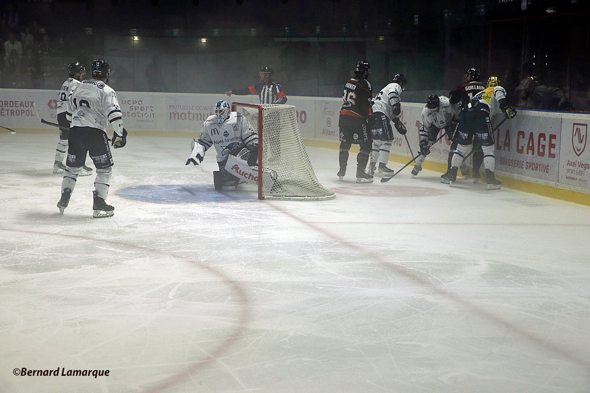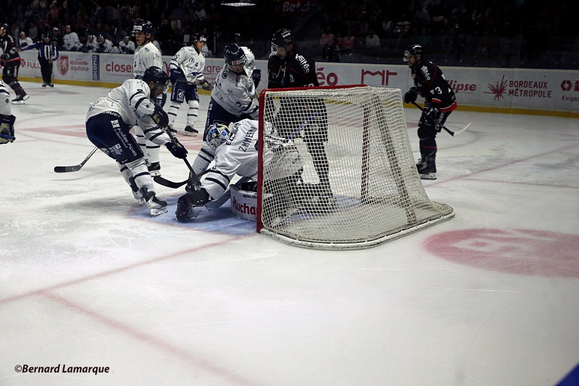 Les visiteurs sont venus avec un plan très simple du type on attaque d’entrée, on prend ce qu’on peut et après on défend en s’appuyant la encore sur un excellent portier et on peut dire que les meilleurs n’ont pas gagné sur l’ensemble du match mais le résultat est là. Il a fallu les cinq premières minutes du match pour aller tambour battant chercher deux buts et après on a barré la porte, enfin on l’a cadenassée avec un Max Zimmerman qui apparait comme le deuxième meilleur gardien de la ligue Magnus. Un peu de même comme ils ont pu être mis en échec par Taran Kozun d’Amiens qui lui est pour l’instant aux statistiques, le meilleur gardien de la ligue Magnus. Il faut quand même noter qu’Olivier Dimet reste toujours dubitatif sur les résultats des tables de marques dont certaines n’hésitent pas à améliorer les stats de leur portier ou de leurs buteurs. Néanmoins le résultat est là en ce qui concerne les deux derniers matchs joués à Mériadeck où à chaque fois les Boxers sont inclinés car maitriser le palet c’et bien mais le mettre au fond c’est mieux. On voit ainsi l’intérêt des équipes à aller chercher de très bon gardien qui même avec quelques erreurs en défense tient a maison debout.