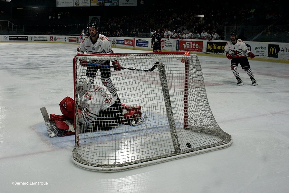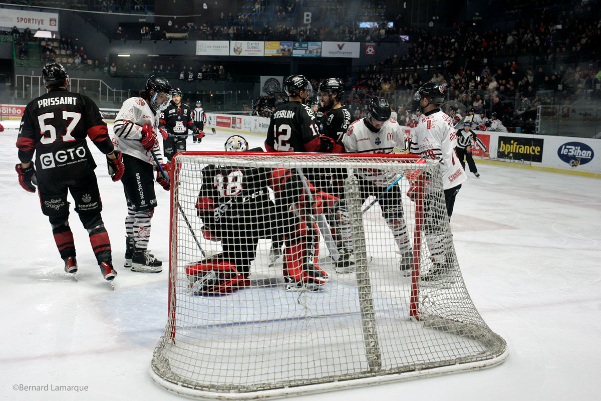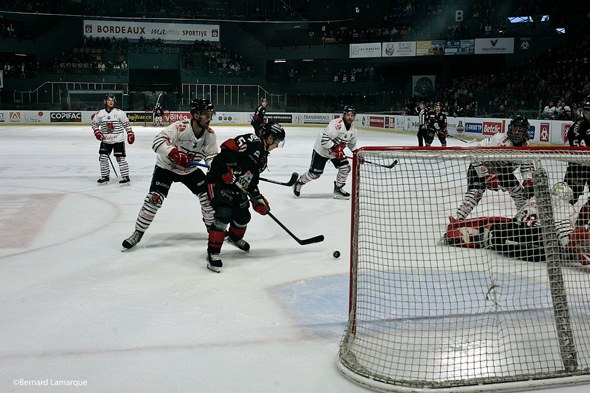 Même si la patinoire n’a pas fait le plein ce sont quand même plus de 2 700 spectateurs qui sont venus soutenir les Boxers ce vendredi soir face à Briançon dont l’objectif reste de se maintenir en ligue Magnus car pour l’instant ils occupent la dernière place de la dite Ligue. La on n’est pas au rugby ou le dernier descend car il y a au Hockey une poule de playdown avec la poule de playoff et en fait ils rodent leurs armes pour disputer cette poule de fin de championnat. Les Boxers ont entamé cette rencontre pied au plancher et a clos le premier tiers temps avec un positif de trois buts à zéro ce qui a donné le ton à la rencontre où les bordelais ont cherché à patiner vite pour se préparer à la rencontre qui va les opposer à Cergy-Pontoise dès mardi soir qui sera surement un adversaire un peu plus coriace que Briançon. Les visiteurs se sont quand même bien battus et n’ont pas vraiment sombrer même si le score est lourd et Hugo Turcotte est allé chercher la rondelle sept fois au fond de la cage durant cette partie.