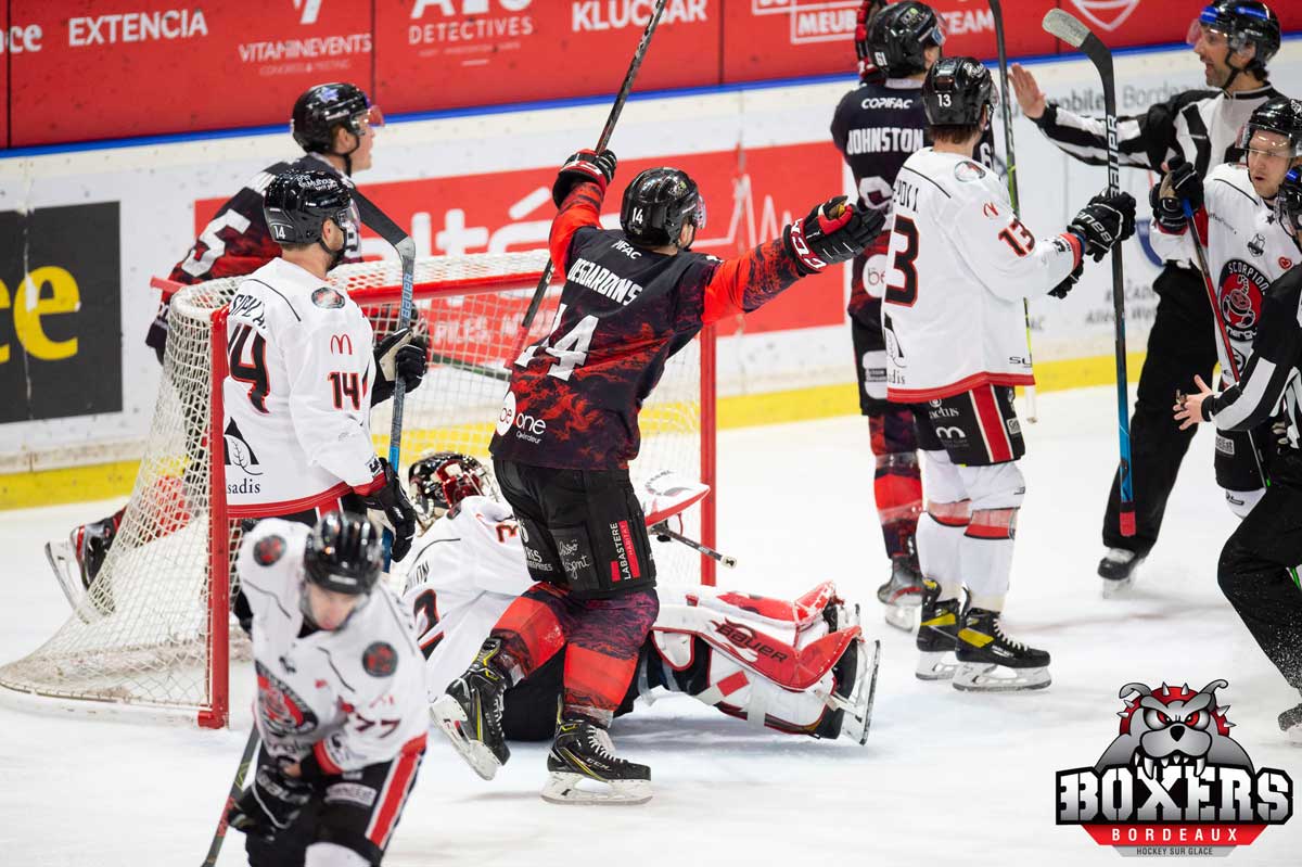 Cette nouvelle année 2021 commence mal pour nos Boxers de Bordeaux. Les Scorpions de Mulhouse ne se sont pas déplacés pour rien et se sont imposés (6-3) ce vendredi 8 janvier à la patinoire de Mériadec, à huis clos bien évidemment.