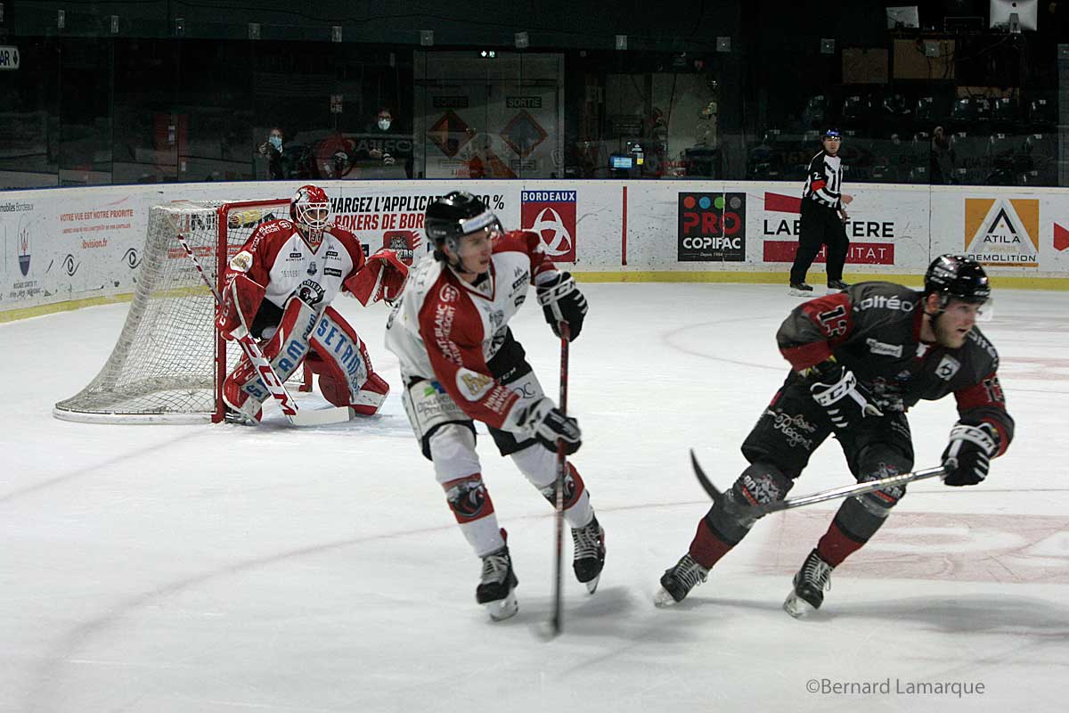 Voyage bénéfique pour les Chamoniards qui abandonnent la dernière place à Briançon et qui se retrouvent à un point de l’Hormadi. Les Boxers conservent leur huitième place qualificative pour les Playoff mais la vigilance s’impose avec surtout le retour en gagne que l’on espère rapidement et peut être dès mardi avec la réception de Nice à Mériadeck pour mettre fin à cette série de défaites. Le parcours de la semaine prochaine conduira les Boxers à aller retrouver les Chamoniards chez eux dès vendredi prochain et la revanche serait la bienvenue dans l’escarcelle des bordelais qui se remplit dangereusement de défaites. L’objectif restant de disputer les Playoff, il va falloir mettre toute l’énergie pour aller cher des victoires dans une patinoire soumise à la jauge où il est impossible pour l’instant de se nourrir ou de boire un verre.