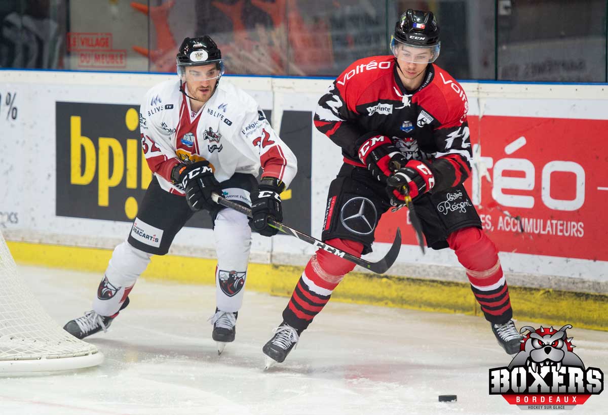 Après cette succession de trois défaites, après la victoire obtenue à Nice, la victoire face à Chamonix redonne du moral aux Boxers qui vont devoir affronter sur leur glace les Rapaces de Gap dès cette fin de semaine, vendredi 29 à 20 h 15. La victoire pouvant leur permettre d’asseoir leur septième place, les Boxers n’ont réussi à tuer le match qu’à un peu plus d’une minute de la fin. Chamonix n’avait pas fait le voyage pour perdre mais bien pour gagner car en cours de deuxième tiers temps ils ont mené au score pendant plus de dix minutes avant que les Boxers parviennent à redresser la situation. Les bordelais n’ont réussi à prendre l’avantage qu’en début de troisième tiers temps et ils ont installé les barbelés. L’entraîneur des Pionniers Timo Saarikoski a tenté le tout pour le tout en fin de ce troisième tiers temps pour tenter d’arracher le nul mais ce sont les Boxers qui ont tué le match à un peu plus d’une minute de la fin. Les plus de 2.200 spectateurs ont poussé un ouf de soulagement car c’était tendu face à un Chamonix très décidé.