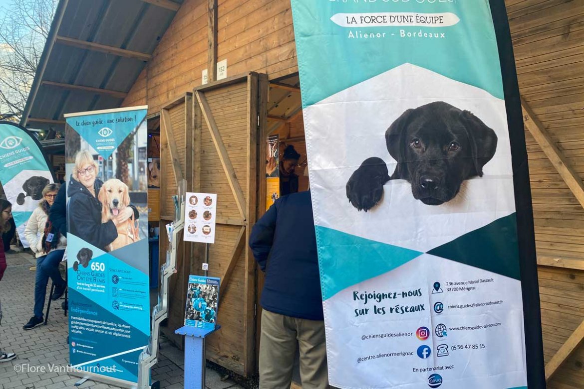 Comme presque chaque années, l’association Aliénor Sud-Ouest est présente au Marché de Noël de Bordeaux. Son but ? Faire découvrir aux bordelais le monde du chien guide, un monde encore très méconnu du grand public. Rencontre avec le vice-président Jean-Marie Schiocchet et son chien Nash, qui l’accompagne au quotidien.