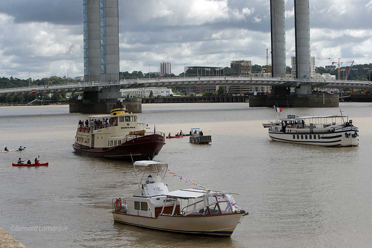 Il était très connu des gens du fleuve et des bateliers locaux qu’il croisait sur le fleuve voir à pied quand il se promenait sur les quais qu’il avait l’habitude de sillonner soit à pied soit en vélo, car il habité à une encablure de ces derniers rue Lombard. C’est vers 10 h 30 ce dimanche matin que la famille, ses amis se sont retrouvés sur les quais à la hauteur de la trouée des platanes des quais face à la place des Quinconces. Puis ils ont pris le chemin vers le ponton d’honneur à la hauteur de la maison Ecocitoyenne pour prendre place à bord du Marco Polo pour suivre depuis le fleuve cet hommage à Gérard Lajournade, homme du fleuve.