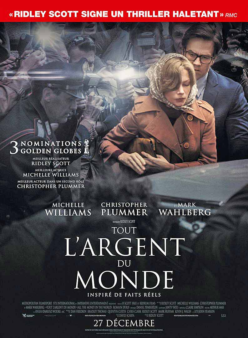 Synopsis : Rome, 1973. Des hommes masqués kidnappent Paul, le petit-fils de J. Paul Getty, un magnat du pétrole connu pour son avarice, mais aussi l’homme le plus riche du monde. Pour le milliardaire, l’enlèvement de son petit-fils préféré n’est pas une raison suffisante pour qu’il se sépare d’une partie de sa fortune. Gail, la mère de Paul, femme forte et dévouée, va tout faire pour obtenir la libération de son fils. Elle s’allie à Fletcher Chace, le mystérieux chef de la sécurité du milliardaire et tous deux se lancent dans une course contre la montre face à des ravisseurs déterminés, instables et brutaux.