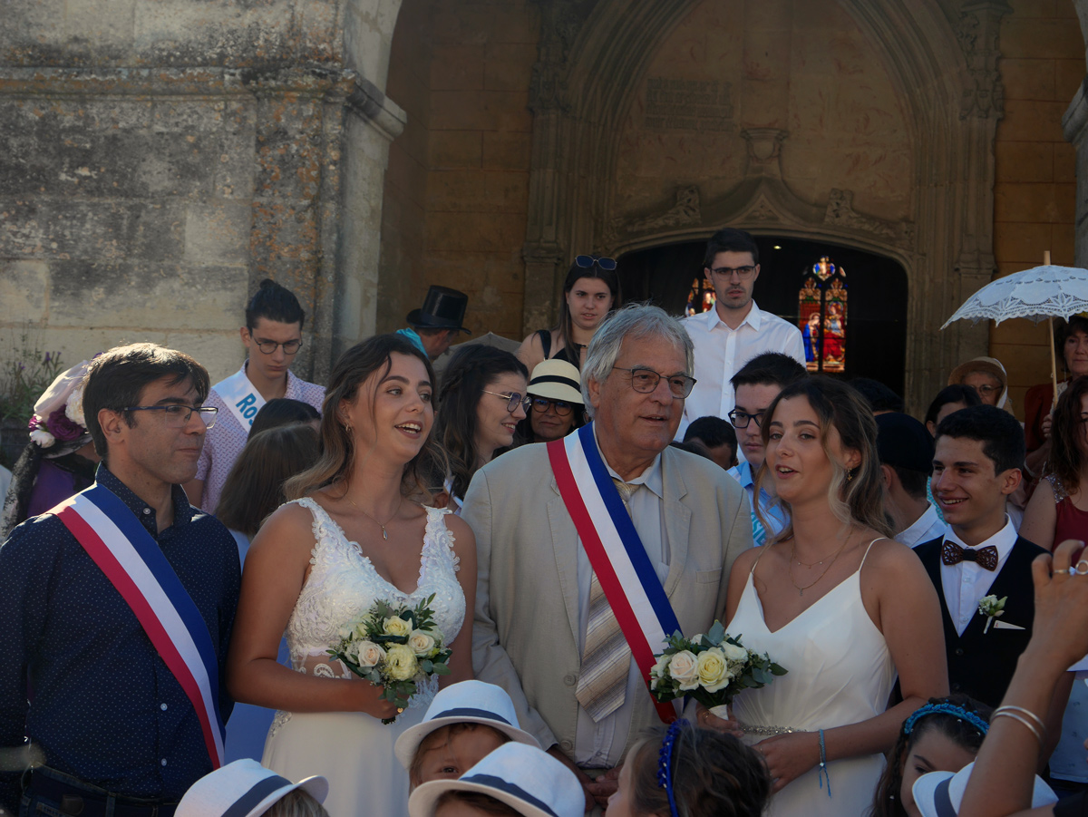 Le public créonnais était bien au rendez-vous. Une foule très bonne enfant après une messe à Notre-Dame de Créon attendait les jeunes créonnais élus. Il y avait là les Rosières et leurs homologues masculins des deux années précédentes qui n’avaient pas pu bénéficier d’une fête : Corinne Forlini et Clément Thoraval Rosière et Rosier 2020 ainsi que Salomé Lespinas et Romain Ruhlmann Rosière et Rosier 2021 ils accompagnaient les Rosières 2022 Eva et Emmy Julien-Brisseau et les Rosiers 2022 Téo Chassard-Toulon et Corentin Latouche.