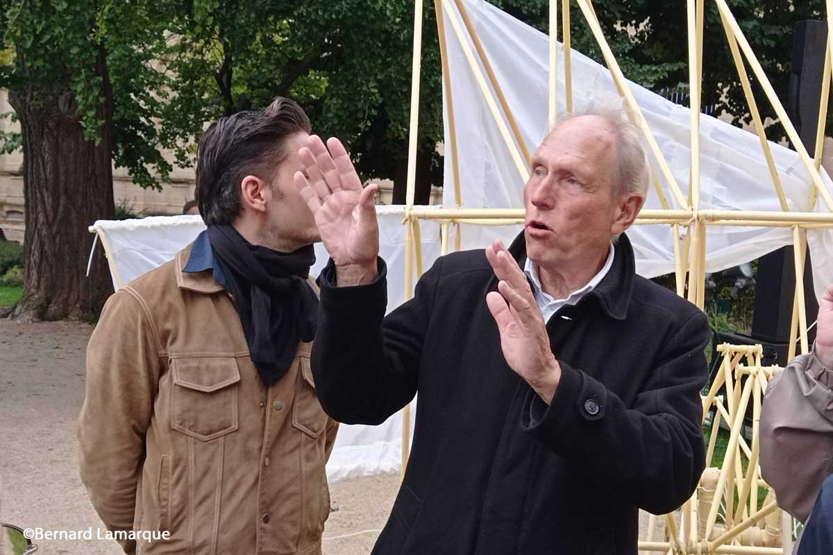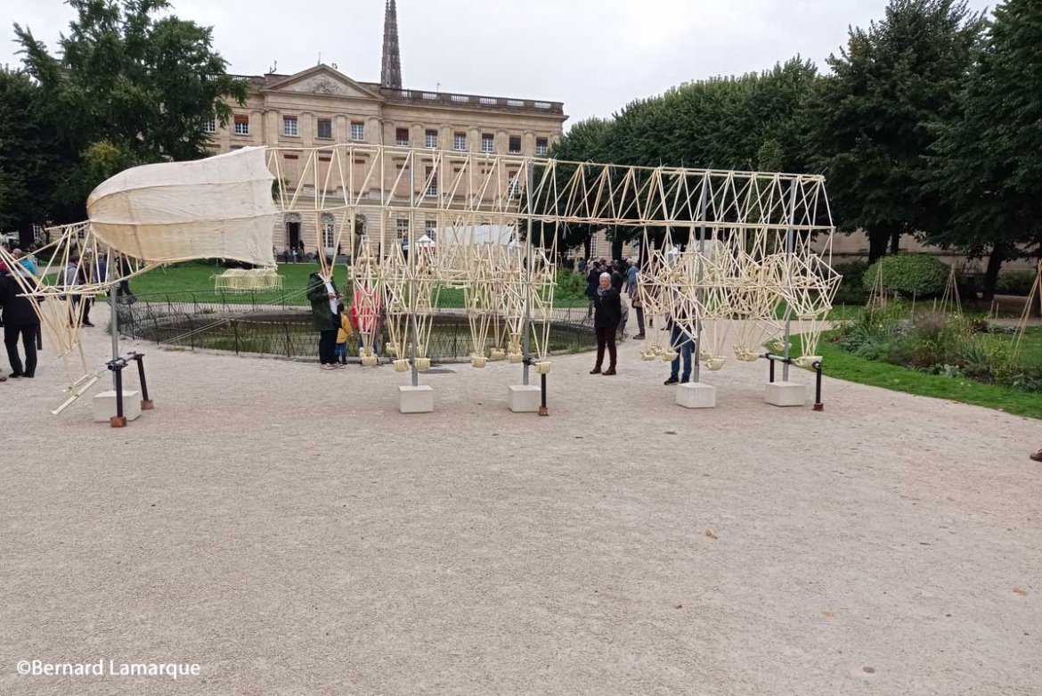 Théo Jansen, invité du FAB 2022 expose ses créations et on pourrait dire ses créatures, dans le Jardin de l’Hôtel de Ville et l’ouverture de cette exposition tient lieu d’inauguration bordelaise du Festival.