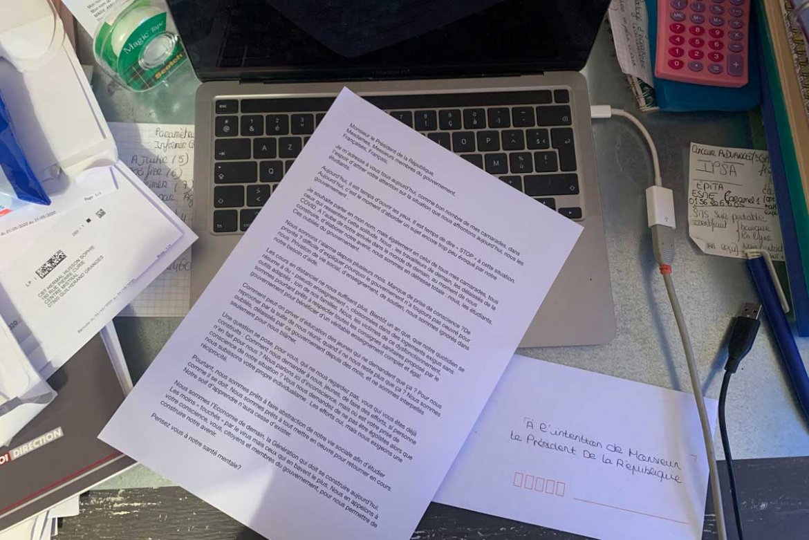 « Cette lettre, à l’origine, c’était pour exprimer ma colère » explique Marie-Amélie Husson, 20 ans. Il y a quelques jours, l’étudiante en journalisme a envoyé un courrier à l’Élysée, adressé au président de la République. Elle y fait part du mal-être dont sont accablés les étudiants et le prie de trouver une solution pour rouvrir au plus vite les facultés et écoles supérieures. « Depuis mars dernier, nos cours ont, en majorité, été assuré à distance. Nous n’en pouvons tout simplement plus. » regrette Marie-Amélie. À ce jour, le gouvernement n’a toujours pas envisagé de date de réouverture des établissements d’étude supérieure.