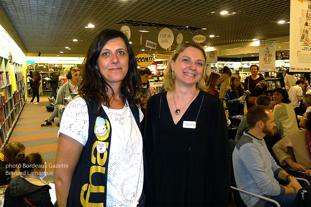 Le choix de la personne qui allait prendre en charge l’opération fut plus simple. Pour Murielle Vigezzi il était évident que c’était Catherine Lejeune. Chacun avait pu noter que dans son rayon, la jeunesse, elle avait à cœur depuis longtemps de mettre en évidence des auteurs aquitains. Beaucoup cependant pensait que le délai fixé pour organiser la manifestation (moins de trois mois) était fou. Une folie qui n’a pas fait peur à Catherine. S’appuyant sur ses collègues, contactant les éditeurs et mobilisant les premiers écrivains ayant accepté de venir, elle a constitué un vrai réseau allant des historiens aux dessinateurs de BD en passant par des romanciers.