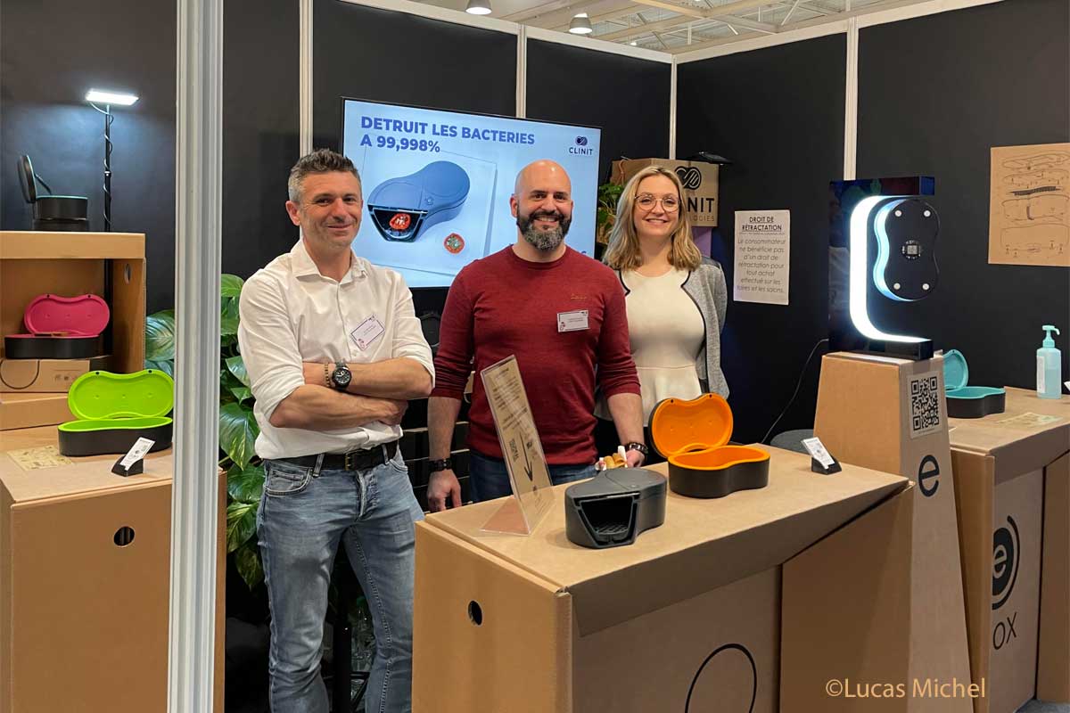 L’équipe de trois qui compose la Clinit Technologie de Toulouse à fait le déplacement à Bordeaux pour présenter son produit : la e-Box. Il s’agit d’un boîtier de désinfection à base de rayonnement ultraviolet C. Ces rayons permettent d’éliminer 99,99% des bactéries, virus et autres micro-organismes sur des objets du quotidien. « Vous vous rendez comptes du nombre de bactéries sur votre téléphone ? On le prend, on le pose partout et on ne pense pas forcément à le désinfecter. Et c’est valable pour beaucoup d’autres objets que l’on utilise tout le temps », nous explique Olivier Authier, fondateur de l’entreprise basée à Toulouse. La crise du Covid a donné à cette e-Box, lancée l’année dernière, encore plus de sens. « On a eu l’idée depuis longtemps, avant la crise sanitaire ». Le boîtier est fabriqué en plastique recyclé, et tout est fabriqué et assemblé en France. Le produit est disponible en vente en ligne au prix de 96 euros.