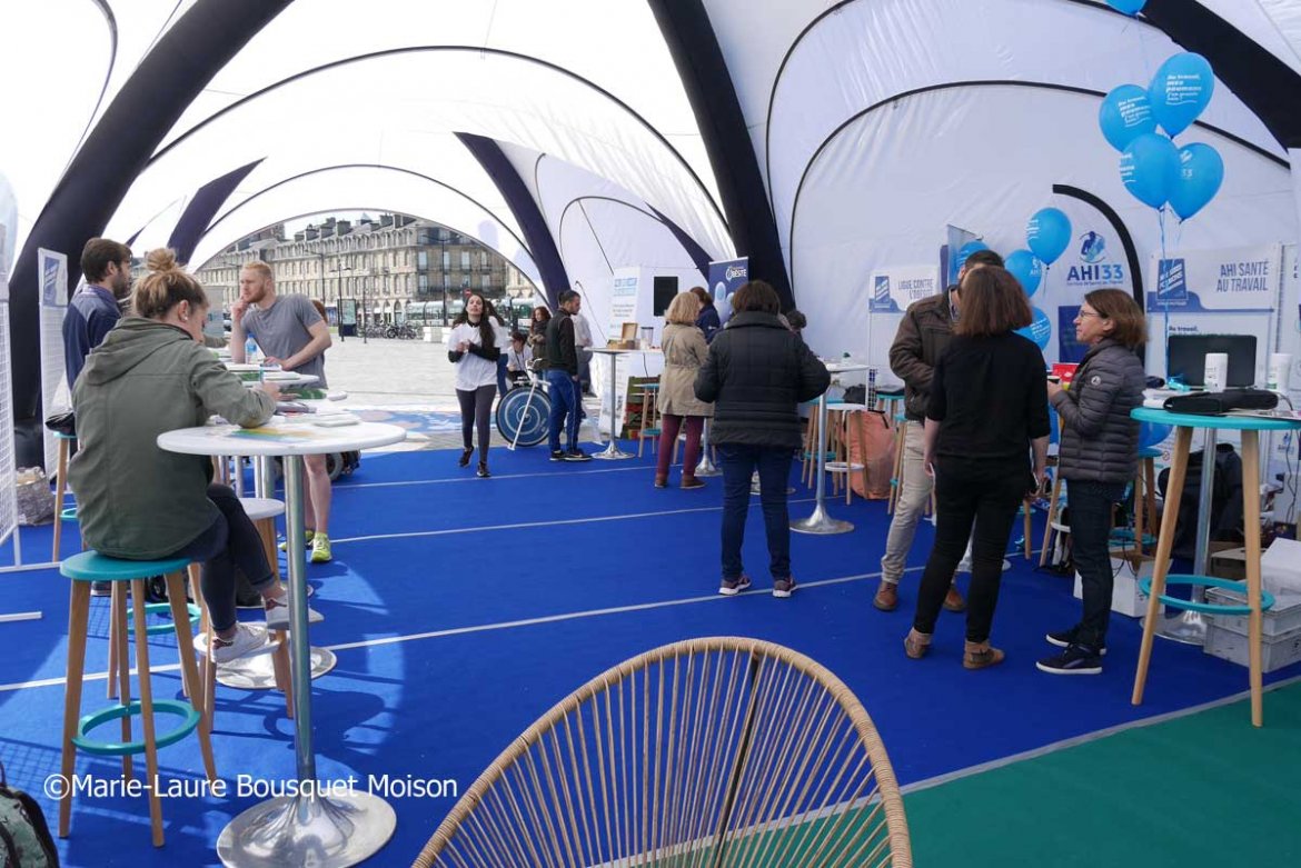 L’idée étant de mesurer l’énergie que vous pouviez déployer en faisant du sport, et bien sûr plus sérieusement, essayer une combinaison pour vous mettre dans la peau d’une personne obèse, ou prendre des renseignements sur les organismes de santé. Enfin vous pouviez découvrir des thérapies parfois inédites ; comme les massages sonores avec des bols tibétains, l’hypnose Ericksonienne, la sophrologie, le yoga, etc. Faire du sport, faire attention à ce que l’on mange (ne pas prendre son corps pour une poubelle : privilégier la qualité sur la quantité.) Tels étaient les principes fondamentaux préconisés. Donc, prendre soin de soi, ensuite, éviter la voiture (autant que possible) marcher, sortir et prendre l’air ! Une journée riche, ludique et intéressante qui signe à nouveau un rendez-vous réussi pour le village « Mai poumons » de Bordeaux.