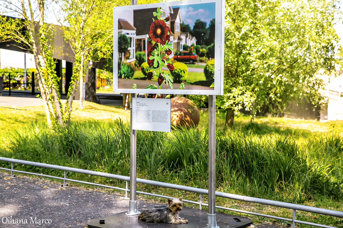 Ce Regard en images n’a pas vocation à remplacer l’article consacré à l’exposition Martin Parr : Art de vivre. Il en propose un contrechamp visuel, plus libre, plus sensible, parfois plus cocasse aussi. Car l’accrochage en plein air crée des situations que Martin Parr lui-même n’aurait sans doute pas détestées : un visiteur qui passe devant une scène mondaine, un chien qui s’installe sous une photographie de fleurs, des silhouettes bordelaises qui se découpent face à des images venues de Bristol ou d’Angleterre.