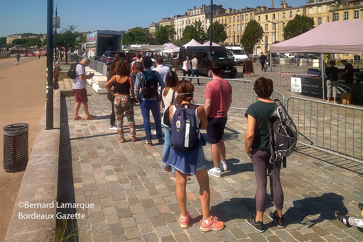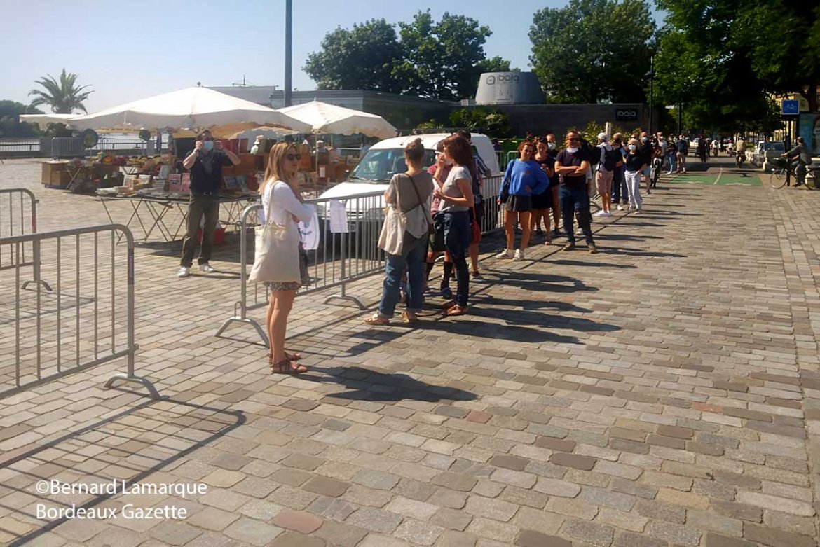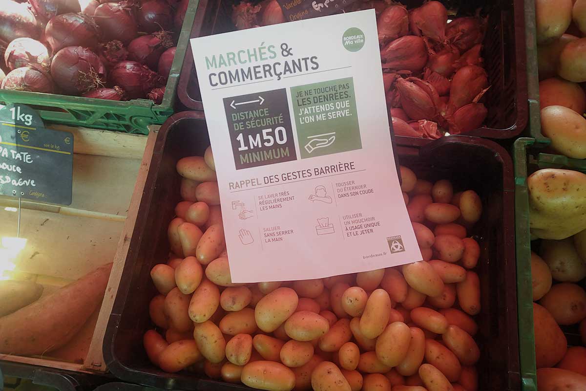 C’est l’article 2 de l’arrêté 202007921 du 7 mai 2020 qui aux vues des considérants stipule : A partir du 1 mai 2020 et jusqu’au 24 juillet 2020 le port d’un dispositif de protection buccal et nasal tel que le masque en tissu ou de type chirurgical, pour toute personne âgée de 11 ans et plus, est obligatoire sur tous les marchés de plein air et couverts. Dans l’article 3 du même arrêté figure un certain nombre de mesures d’organisation, de flux, de contrôle à l’entrée, d’hygiène et d’obligations pour les commerçants qui fixent des règles pour la tenue d’un marché de plein air tel que celui du marché des quais de Bordeaux Chartrons. En conséquence le dit marché est entièrement clos à l’aide de barrières qui délimitent une surface bien isolée, dotée de seulement deux entrées et deux sorties pour avoir une meilleure gestion des flux en nombre pour ne pas surcharger l’espace pour pouvoir maintenir la distance minimale entre les chalands et éviter toute promiscuité dans l’enceinte déterminée.