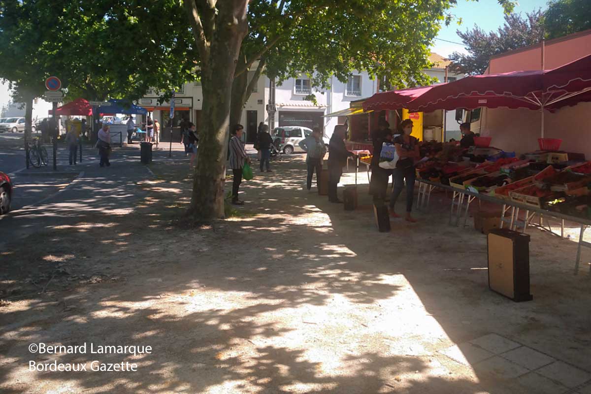 Si le plus grand marché de Bordeaux intra-muros a repris vie l’un des plus petits de Bordeaux a lui aussi repris force et vigueur et il s’agit de celui de la place René Maran à Bacalan qui ne compte en tout et pour tout que quatre étals mais qui est assidûment suivi par la population du quartier. Bien sûr il existe aussi un marché place Buscaillet tous les vendredis mais les marchés du dimanche restent des marchés particuliers. Place Maran, on retrouve une marchande d’huîtres, une jeune marchande de fleurs, un camion rôtisserie qui délivre de très beaux poulets rôtis à la broche et un marchand de fruit et légumes, le tout installé à proximité de la boulangerie de la place. Certes tout le monde n’était pas équipé de masques pour ce premier matin mais la distance barrière de un mètre cinquante était très correctement respectée et en ce qui concerne les fruits et légumes deux personnes servaient à la demande des clients afin que nul ne touche aux produits de l’étal dont les couleurs scintillaient sous le soleil revenu pour le plus grand plaisir des habitants du quartier du cœur de Bacalan.