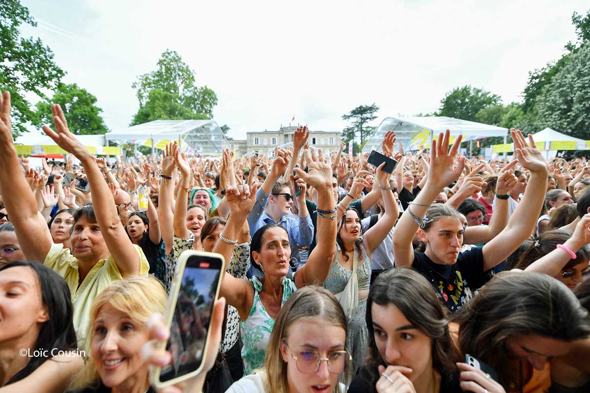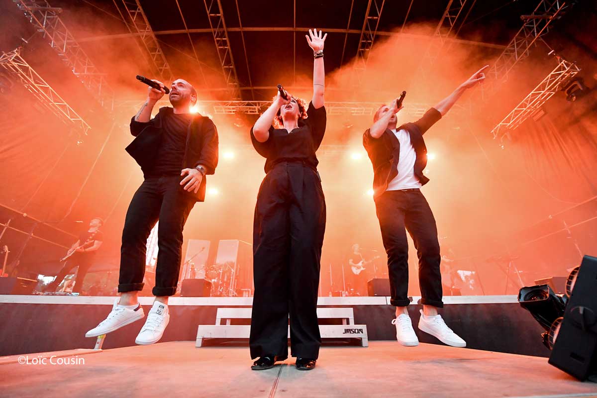 C’est ensuite le trio corrézien des 3 Cafés Gourmands qui a envahi la scène, accompagné des nombreux musiciens. Ceux qui se sont fait connaître du grand public avec « A nos souvenirs », en ont fait des kilomètres, et des scènes depuis, jusqu’à même se faire offrir le privilège d’une chanson avec Jean-Jacques Goldman « Quand ». Le public, composé de beaucoup d’enfants, a repris à l’unisson la quasi-totalité du concert, et pour se les mettre un peu plus dans la poche, Mylène, Sébastien et Jérémy ont entamé le concert en remontant tout le parc Peixoto jusqu’à la scène. 1h15 de live, vivant, chantant, et qui fait du bien avec une belle énergie.