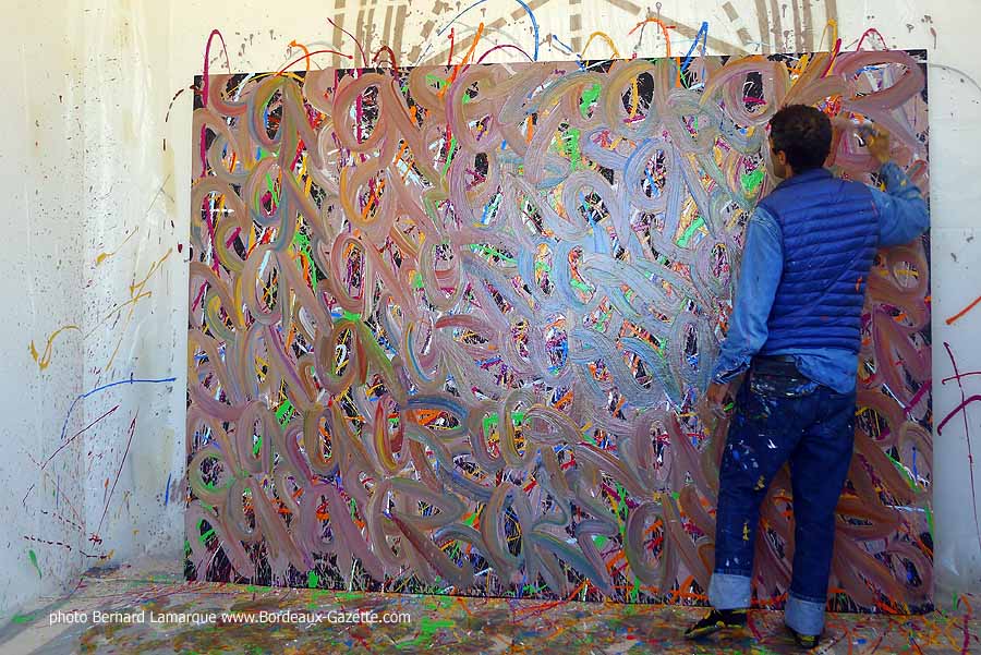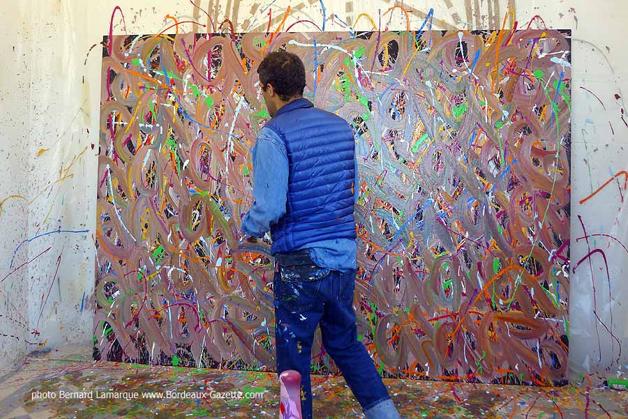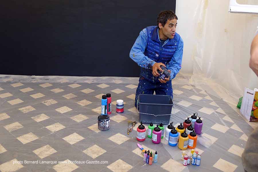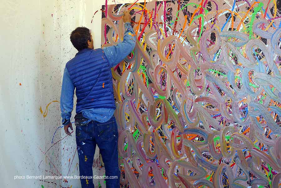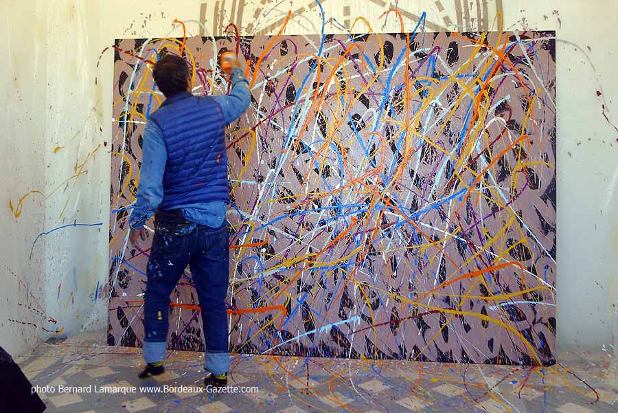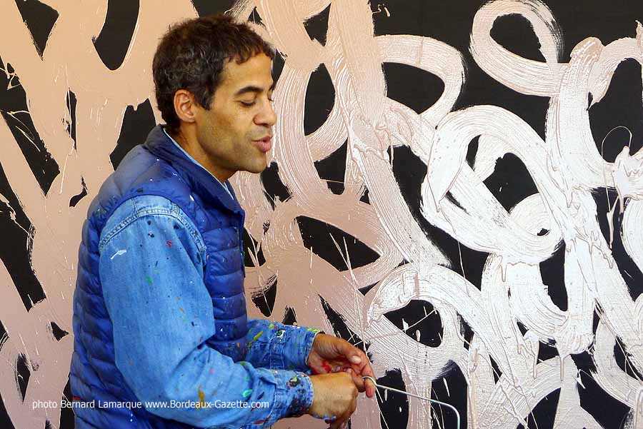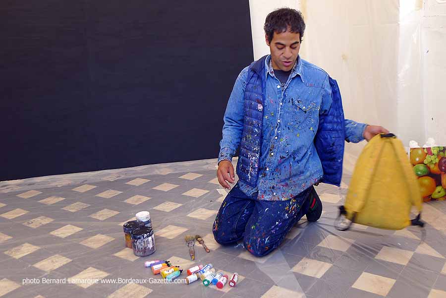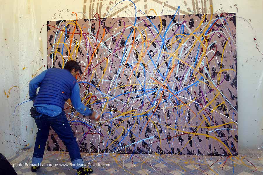 C’est dans le petit pavillon situé à l’entrée du château Labottière que JonOne a réalisé sa performance devant de très nombreux curieux dont certains venaient de loin. Durant son travail il a refait son historique avec beaucoup d’humour comme à l’habitude et on a tout appris sur lui à ses débuts où il n’hésitait pas à chaparder de la peinture.