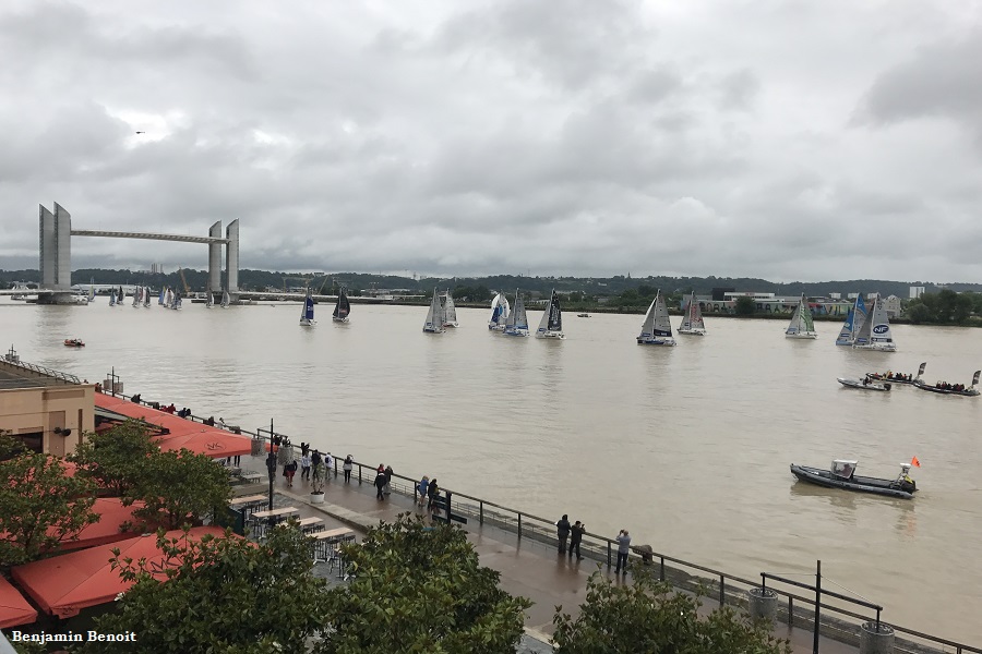 C’est donc aujourd’hui qu’avait lieu le prologue de la Solitaire Urgo-Le Figaro. Et comme chaque année les concurrents se sont mis en ligne sur la Garonne au niveau du miroir d’eau. En vagues successives de huit bateaux, ils ont pris le départ en direction du pont Jacques Chaban-Delmas. Ce prélude au grand départ de ce dimanche leur permet de regagner Pauillac, où ils doivent passer la nuit et qui sera le point de départ de cette Solitaire 2017. Une première étape, la plus longue des quatre de cette 48ème édition, qui mènera nos skippers vers la ville de Gijon en Espagne. Les trois autres étant Gijon-Concareau, Concarneau-Concarneau et enfin Concarneau-Dieppe.