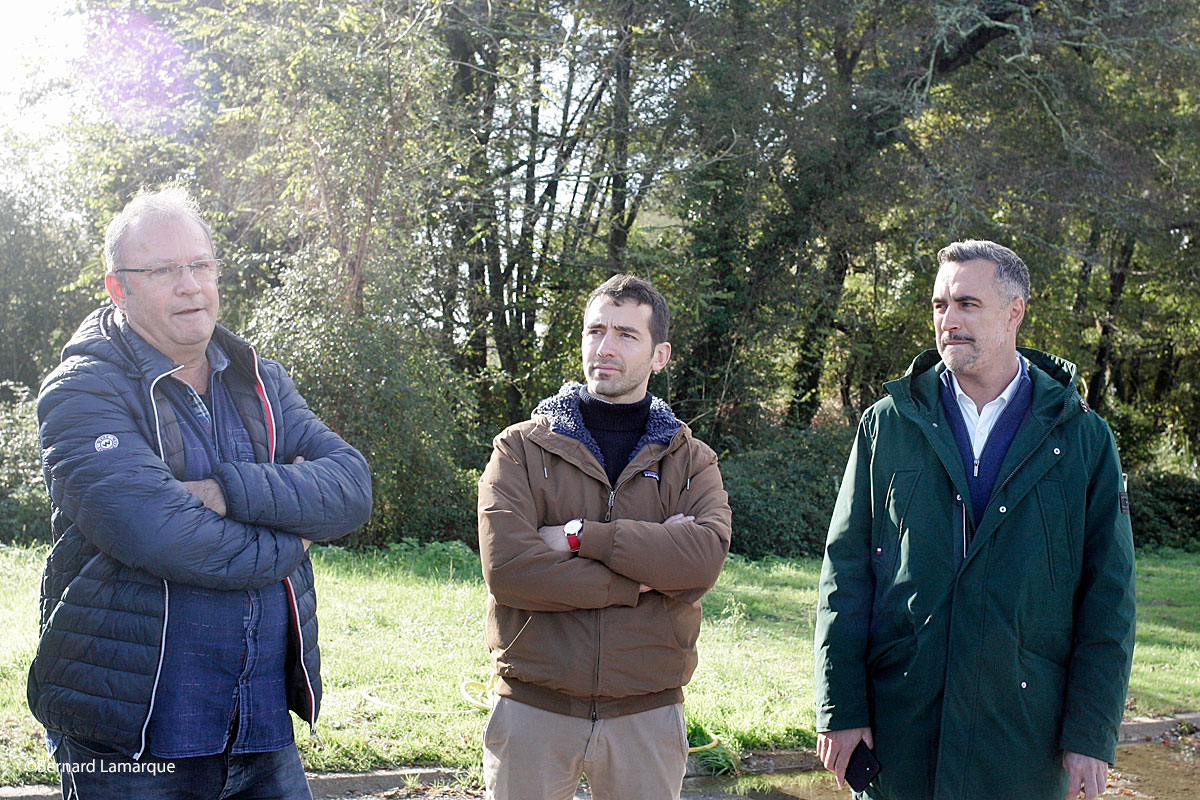 - Le gestionnaire du site de Mezos ; Xavier Permingeat, Directeur d’activité photovoltaïque UNITe ; Valentin Deporte, Directeur pôle élevage France Aqualande
