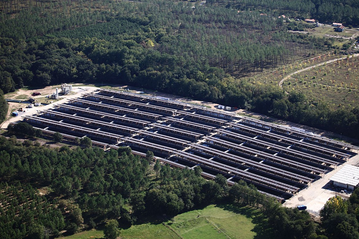 Le groupe AQUALAND né en1981 possède cette immense pisciculture ( et c’est une coopérative de piscicultures qui a fait appel à Hydrowat du groupe UNITe pour équiper le site de Mezos qui est le plus grand d’Europe avec 32 000 mètres/carrés de bassins représentant 13 lignes de 300 mètres de long soit la plus grande pisciculture ’Europe dans ce périmètre de Mézos Saint Julien qui compte trois piscicultures. La pisciculture et une des activités majeures du département des Landes qui en compte de nombreuses dont celle de Mézos avec son immense couverture photovoltaïque. AQUALAND regroupe quarante et une piscicultures exploitées de manière familiales. La production d’électricité n’a pas été le moteur de l’installation de ce dispositif destiné à la protection de l’élevage pour l’essentiel mais il produit quand même 4,2 mégawatts crêtes avec deux bâtiments d’onduleurs et rapporte 30 000 euros à la commune par an ce qui représente une aide budgétaire non négligeable pour cette petite commune des Landes qui ne vivrait alors que du Tourisme qui parfois offre des revenus bien incertains.