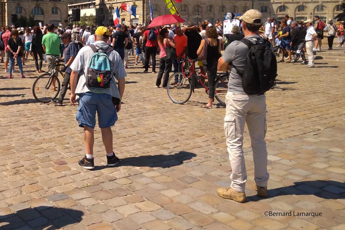 A Bordeaux ce samedi la manifestation n’a eu le droit de se montrer qu’en dehors d’un espace bien délimité qui empêchait la pénétration du cortège dans le centre ville pour éviter les incidents de la semaine passée. Les manifestants étaient face à un périmètre bien borné qui ne leur permettaient que de se diriger vers le pont de pierre et d’emprunter le cours Victor Hugo et la rue de Cursol sans pouvoir parcourir ni le cours d’Albret ni le cours Clémenceau. Parmi ces manifestants, beaucoup sont vacciné(e)s car il y a déjà quatre millions de vaccinés en Aquitaine. A écouter certains il aurait mieux valu rendre la vaccination obligatoire et après si on n’est pas vaccinés tan pis pour ceux qui se font prendre car le permis est obligatoire et cela n’empêche pas quelques uns de rouler sans permis. On peut toujours se demander si la comparaison est valable mais en attendant insidieusement la vaccination progresse avec bientôt près de soixante pour cent de la population française vaccinée, mai cela nous sortira-ils du guêpier, tout le monde s’interroge et beaucoup sont dubitatif sur la suite.