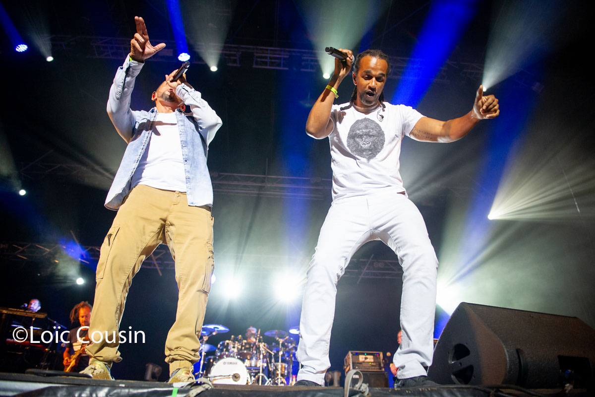 Cet événement musical qui se tient dans un champ, avec une seule et énorme scène, attire beaucoup de festivaliers de tout âge et tout horizon. Ce vendredi 26 juillet 2019 était classé sous le signe du reggae, ska, et dub avec tout d’abord le groupe tremplin Ryon , formé en 2014 en Aquitaine. Sur scène les 5 comparses, enchaînent des morceaux fédérateurs et n’hésitent pas à rappeler entre les titres, l’importance de respecter le mot d’ordre du festival, l’éco-citoyenneté. Le groupe de reggae qui a sorti son deuxième album « Zéphyr » en 2018, joue un concert d’une heure devant environ 3000 festivaliers et sous un soleil radieux. Quelques interactions avec le public, un bon son, une voix atypique du chanteur Cam, un savoureux mélange qui fait de ce premier concert une bonne entrée en matière.