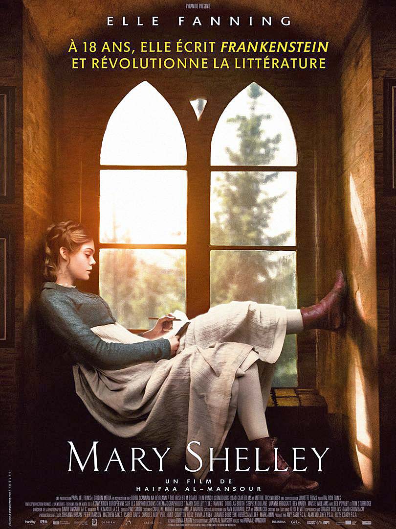 Synopsis : En 1814, Mary Wollstonecraft Godwin entame une relation passionnée et scandaleuse avec le poète Percy Shelley et s’enfuit avec lui. Elle a 16 ans. Condamné par les bienpensants, leur amour tumultueux se nourrit de leurs idées progressistes. En 1816, le couple est invité à passer l’été à Genève, au bord du lac Léman, dans la demeure de Lord Byron. Lors d’une nuit d’orage, à la faveur d’un pari, Mary a l’idée du personnage de Frankenstein. Dans une société qui ne laissait aucune place aux femmes de lettres, Mary Shelley, 18 ans à peine, allait révolutionner la littérature et marquer la culture populaire à tout jamais.