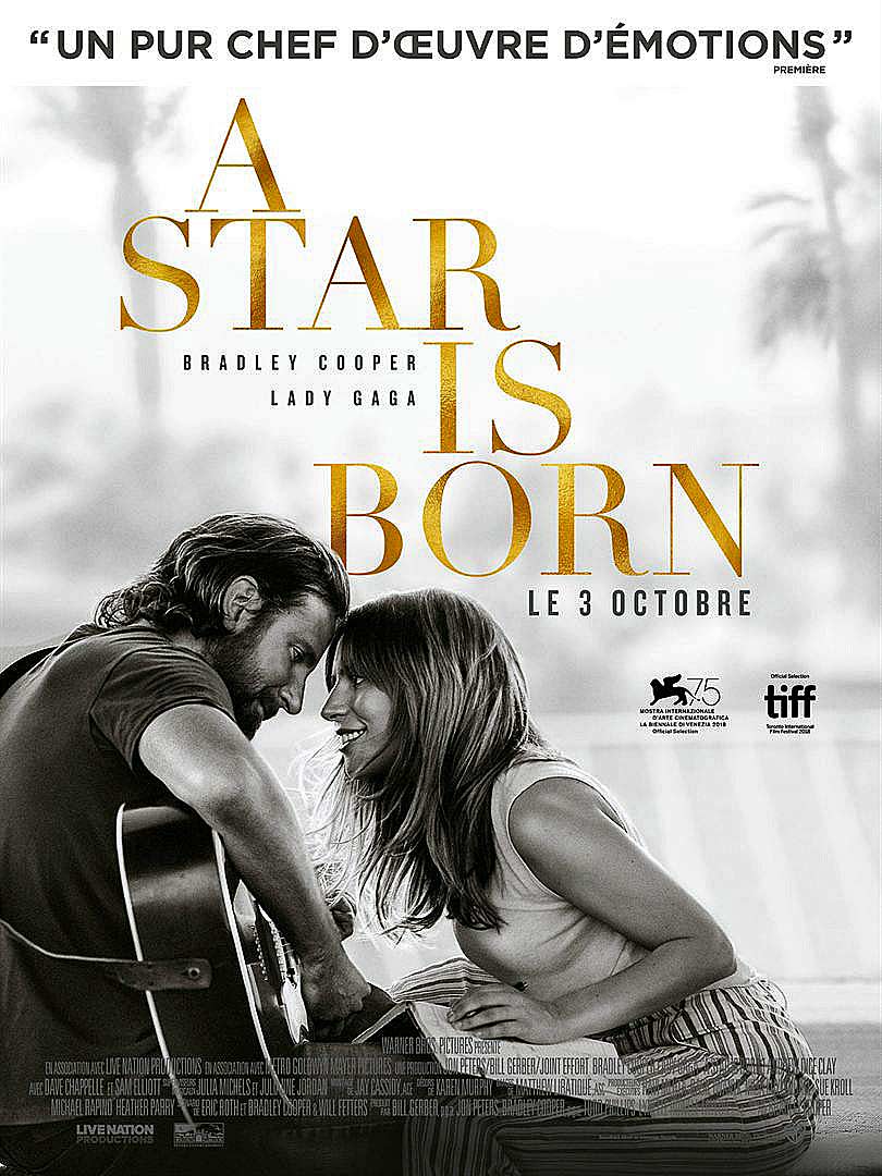 Synopsis : Star de country un peu oubliée, Jackson Maine découvre Ally, une jeune chanteuse très prometteuse. Tandis qu’ils tombent follement amoureux l’un de l’autre, Jack propulse Ally sur le devant de la scène et fait d’elle une artiste adulée par le public. Bientôt éclipsé par le succès de la jeune femme, il vit de plus en plus de mal son propre déclin…