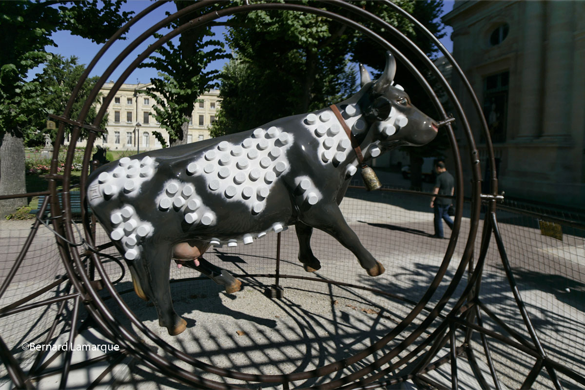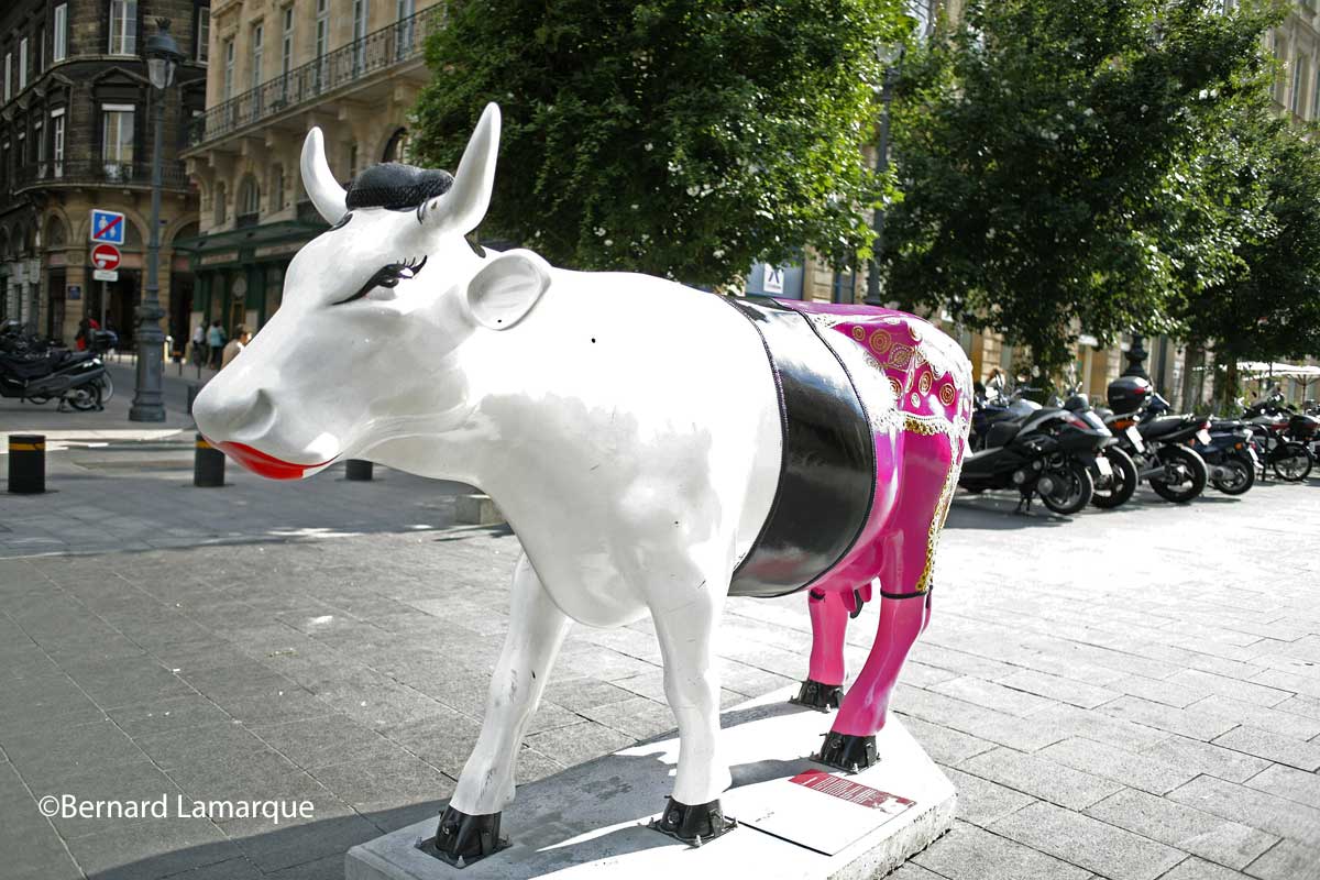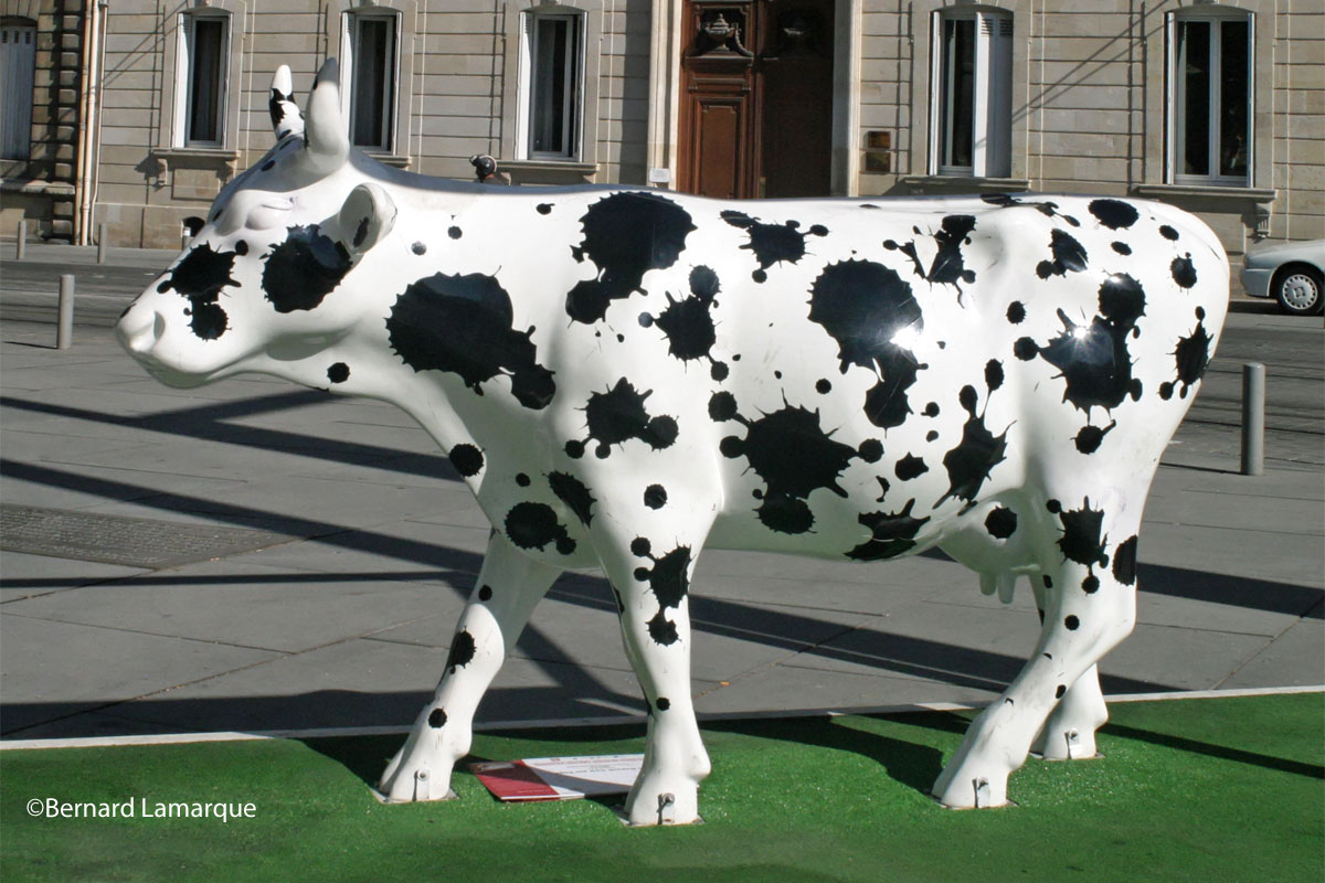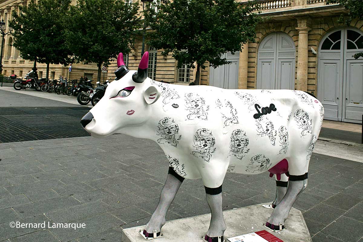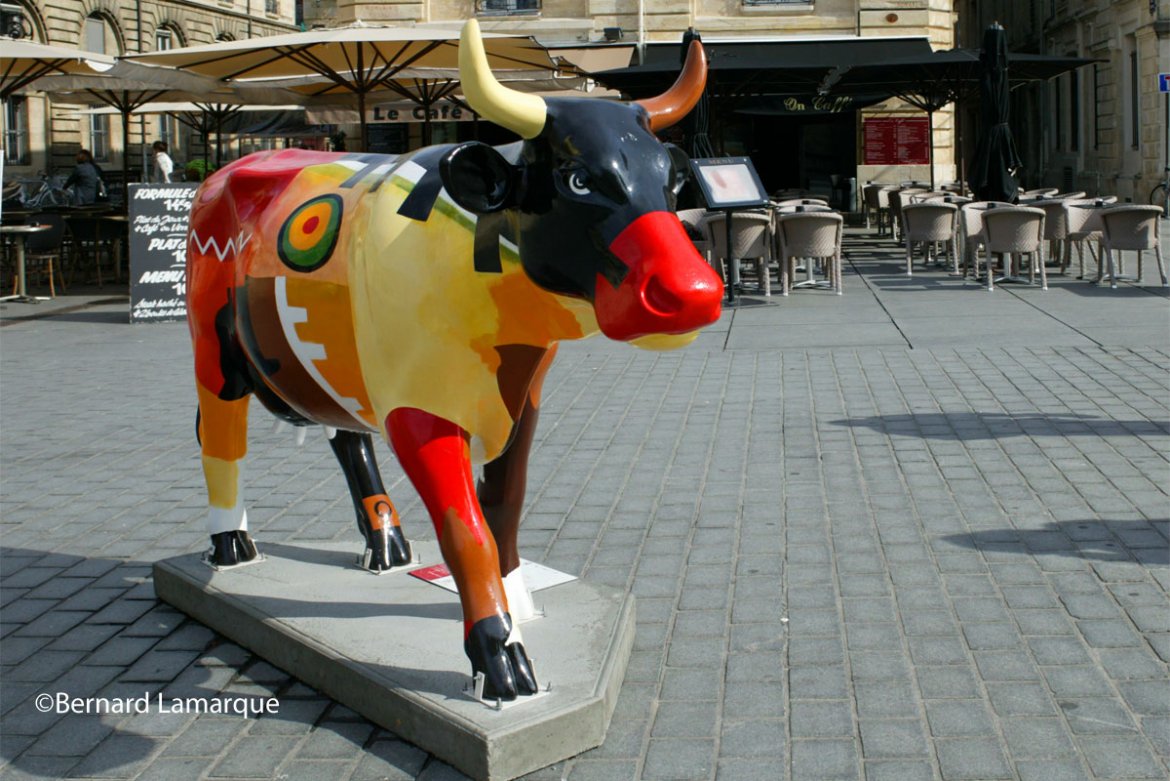 La Cow Parade est devenue un concept à part entière, un concept qui a fait le tour du monde. L’événement a été organisé pour la première fois en 1998 par une association de commerçants zurichois mais elle a réellement pris son envol en 1999 et Bordeaux a inscrit son nom à la manifestation l’année 2010. Depuis la première zurichoise, plus de 7500 vaches ont été décorées par autant d’artistes, 85 villes les ont accueillies à travers le monde, 450 millions de fans les ont aimées et 35 millions d’euros ont été reversés à des associations caritatives. Une Cow Parade est prévue à Mexico le mois prochain qui sera la deuxième et qui revient ainsi, à la CdMx*, cette fois les organisateurs prendront des mesures contre le vandalisme, mais on ne sait si elle aura effectivement lieu. C’est la photo de la Vache engagée qui ouvre l’article et avait pris son quartier place de l’Hôtel de Ville.