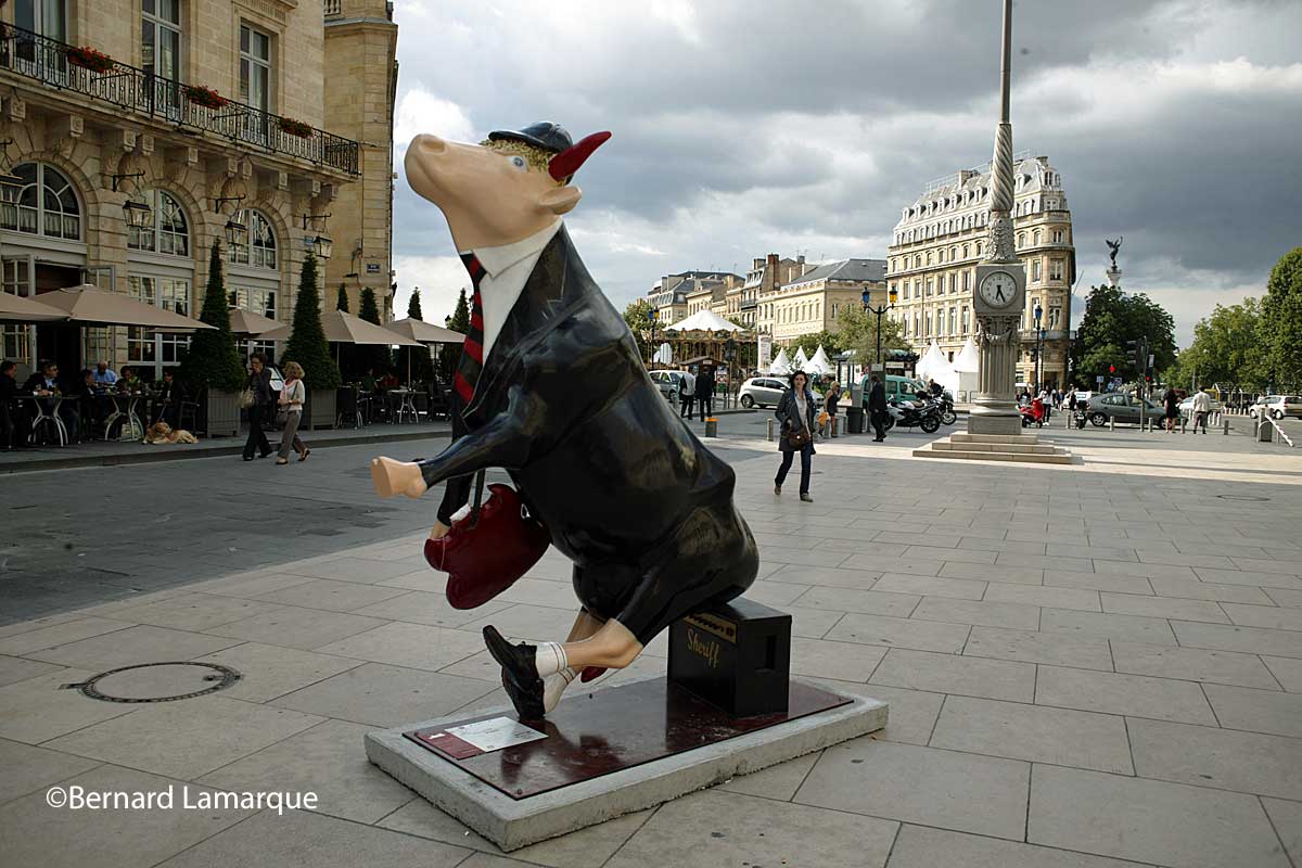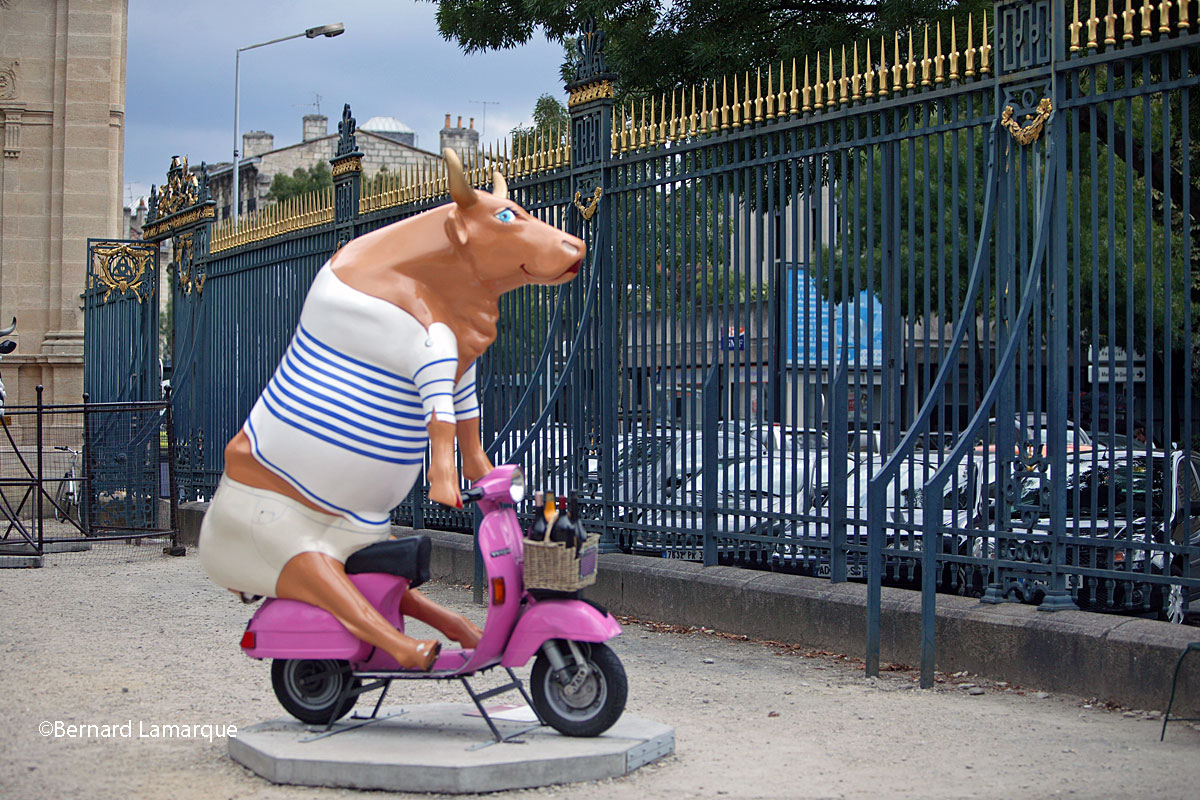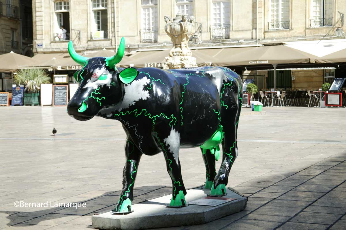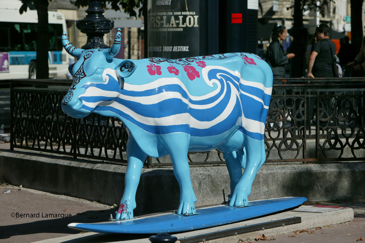 La Cow Parade est devenue un concept à part entière, un concept qui a fait le tour du monde. L’événement a été organisé pour la première fois en 1998 par une association de commerçants zurichois mais elle a réellement pris son envol en 1999 et Bordeaux a inscrit son nom à la manifestation l’année 2010. Depuis la première zurichoise, plus de 7500 vaches ont été décorées par autant d’artistes, 85 villes les ont accueillies à travers le monde, 450 millions de fans les ont aimées et 35 millions d’euros ont été reversés à des associations caritatives. Une Cow Parade est prévue à Mexico le mois prochain qui sera la deuxième et qui revient ainsi, à la CdMx*, cette fois les organisateurs prendront des mesures contre le vandalisme, mais on ne sait si elle aura effectivement lieu. C’est la photo de la Vache engagée qui ouvre l’article et avait pris son quartier place de l’Hôtel de Ville.