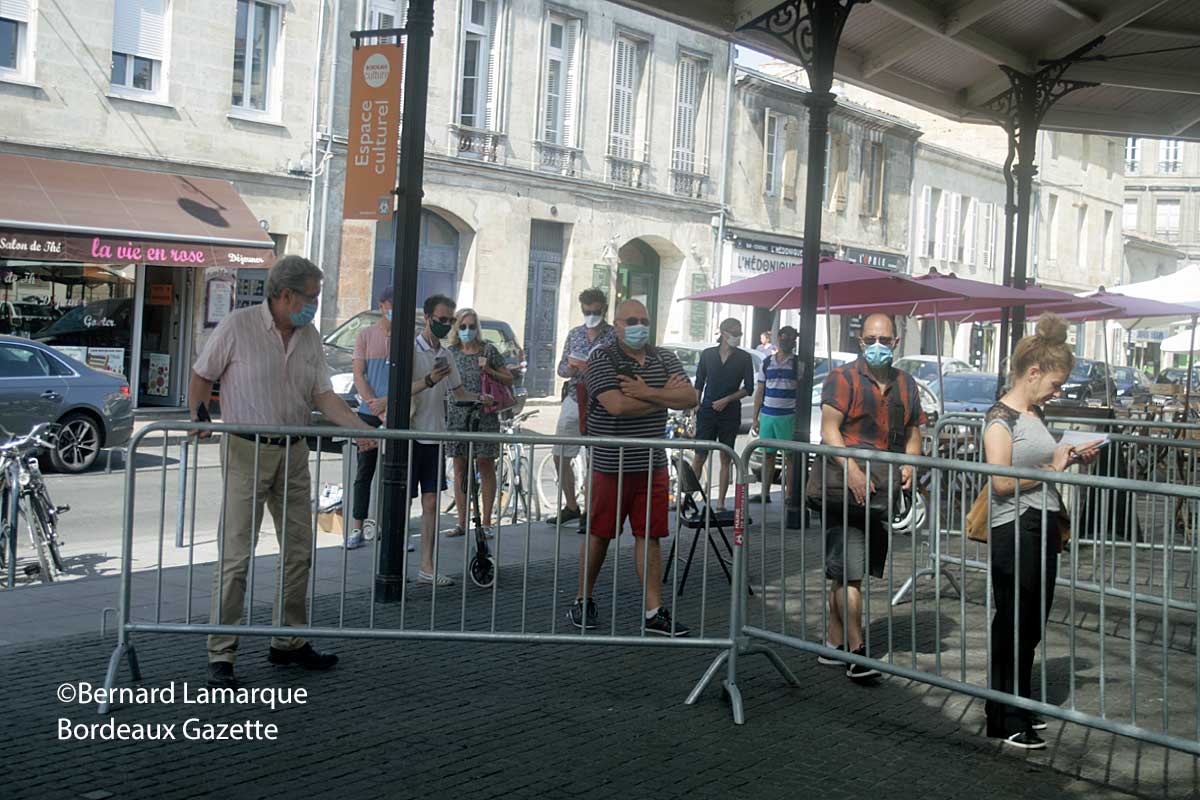 Partout où il y a concentration de foules l’explosion est latente d’où le port du masque dans les lieux confinés ou dans les endroits à forte concentration de population et du reste ne serait-il pas bienvenue d’imposer à nouveau le port du masque rue Sainte-Catherine et rue Porte-Dijeaux. Sans être pourtant obligatoire, il reste assez largement porté et il faudrait arrêter de pousser des cris d’orfraie quand le masque est imposé car il s’agit de santé publique, notion assez peu perméable aux cerveaux du français de base plus préoccupé de sa santé personnelle que de celle des autres. Si le site du Grand Parc est remarquablement choisi avec air et espace pour les personnes voulant se faire tester, celui du marché des Chartrons est lui aussi, symboliquement remarquablement bien choisi mais il pose un petit problème de télescopage entre files d’attente et terrasses des points de restauration qui profite largement de l’extension des terrasses sur le parvis du dit marché. Bernard Blanc, maire responsable de ce secteur car la dénomination maire de quartier semble un peu restrictive pour d’immenses secteurs comme par exemple celui dénommé Bordeaux Maritime, en a fait les frais et s’est fait vertement rabroué par une tenancière qui considère que la mairie empiète sur son terrain. En élu responsable il s’est évertué à donner satisfaction à la plaignante, tout ceci montrant bien que le terme solidarité n’a pas toujours totalement infiltré l’esprit de certain(e)s.
