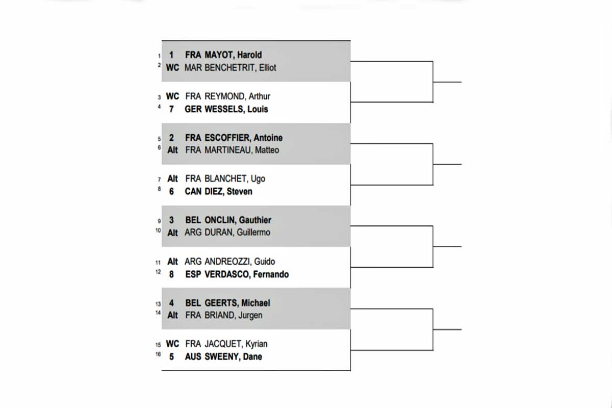 Après quelques remaniements du juge arbitre et du superviseur, le tirage au sort a commencé. Le tableau comptabilise 16 joueurs dont 3 wilds cards. Elles ont été attribuées à deux joueurs du club de Primrose, Kyrian Jacquet et Elliot Benchetrit, Arthur Raymond bénéficie aussi de cette chance.
