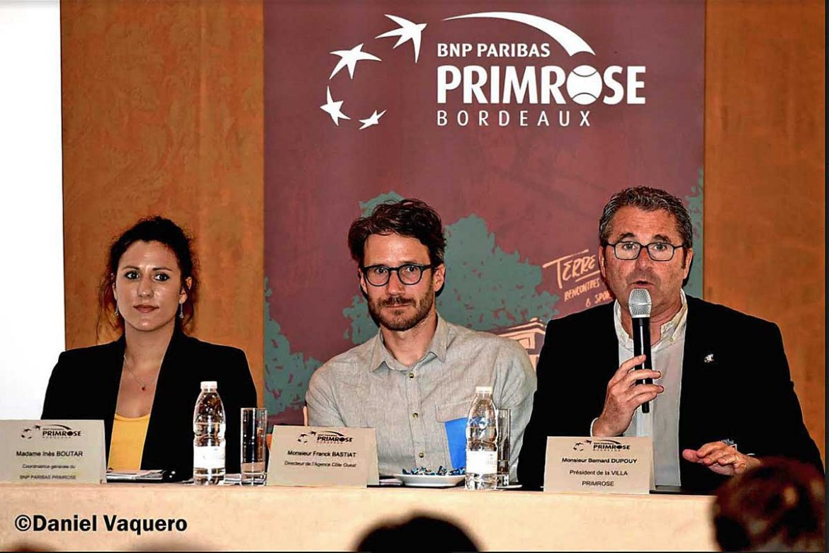 La conférence de presse tant attendue, annonçant les joueurs présents pour la 11ème édition du BNP Paribas Primrose, se tenait au grand hôtel de Bordeaux le mardi 24 avril 2018, avec à la présentation Bernard Dupouy (président de la villa Primrose), Inès Boutar (coordinatrice générale du tournoi, Franck Bastiat (Agence Côté Ouest), Michel Castets (Ligue Nouvelle Aquitaine de Tennis), Joël Solari (adjoint au maire de la ville de Bordeaux en charge des personnes en situation de handicap), et Fabien Labasse (responsable régional BNP Paribas banque privée).